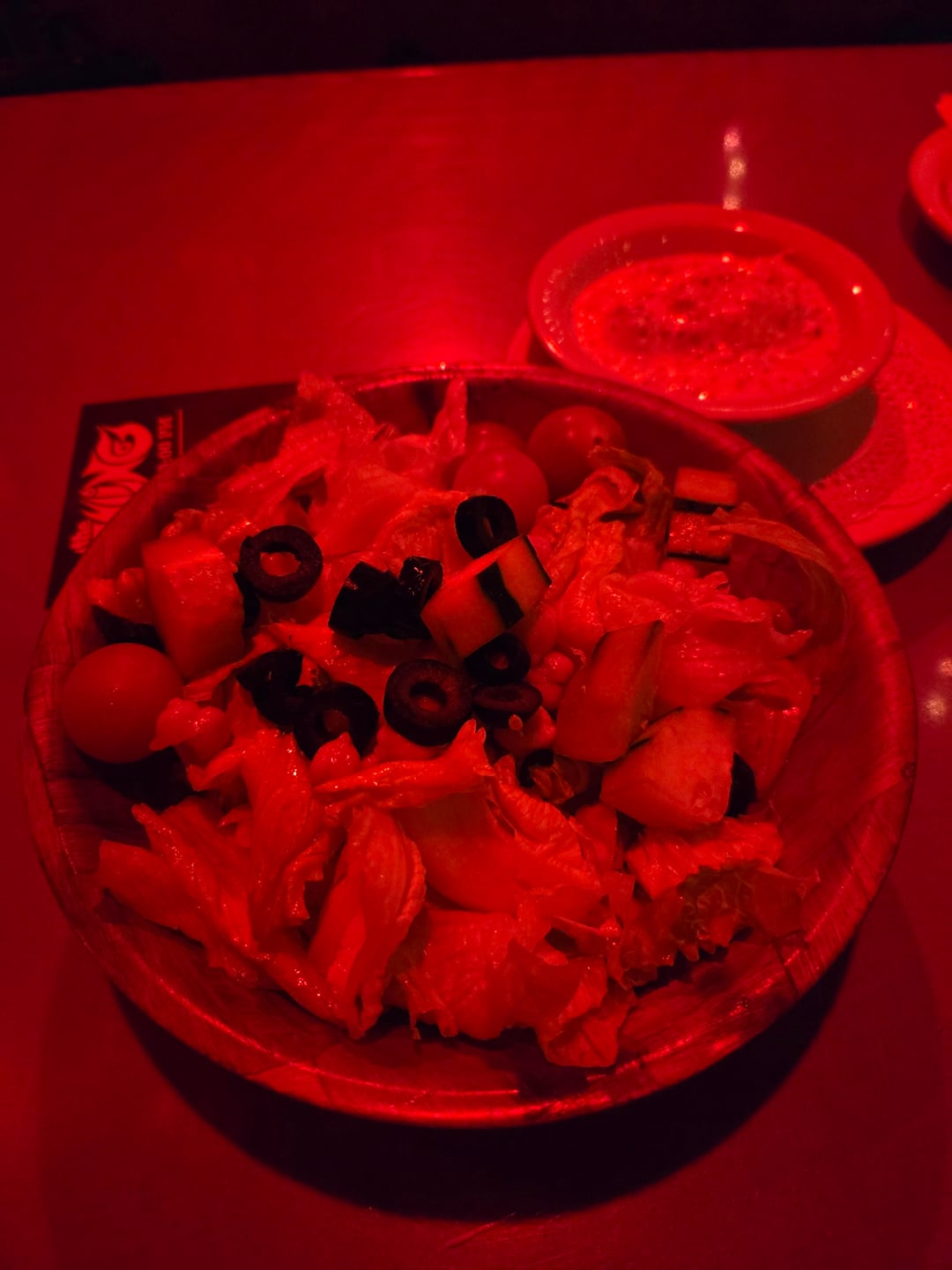 Went to a show at the Roxy, and the Rainbow just feels like one of those places you gotta experience once if you live in LA long enough. It's cheesy, sure, and you may feel a strange mix of pity and admiration when you see the bass player for Faster Pussycat or something at the next table over. It's overpriced, but you know it's a tourist trap going in, however the Italian food they offer is not bad. These are the biggest ravioli I've ever seen. The bleu cheese dressing on the salad was pretty good. The Lemmy (Jack & Coke) was fine but $15. Again, you know what you're getting into here. Plus, hey, the atmosphere is totally one of a kind. Where else can you eat pasta while they play an entire Crowbar album front to back. Excuse the intense red lighting they have going on.