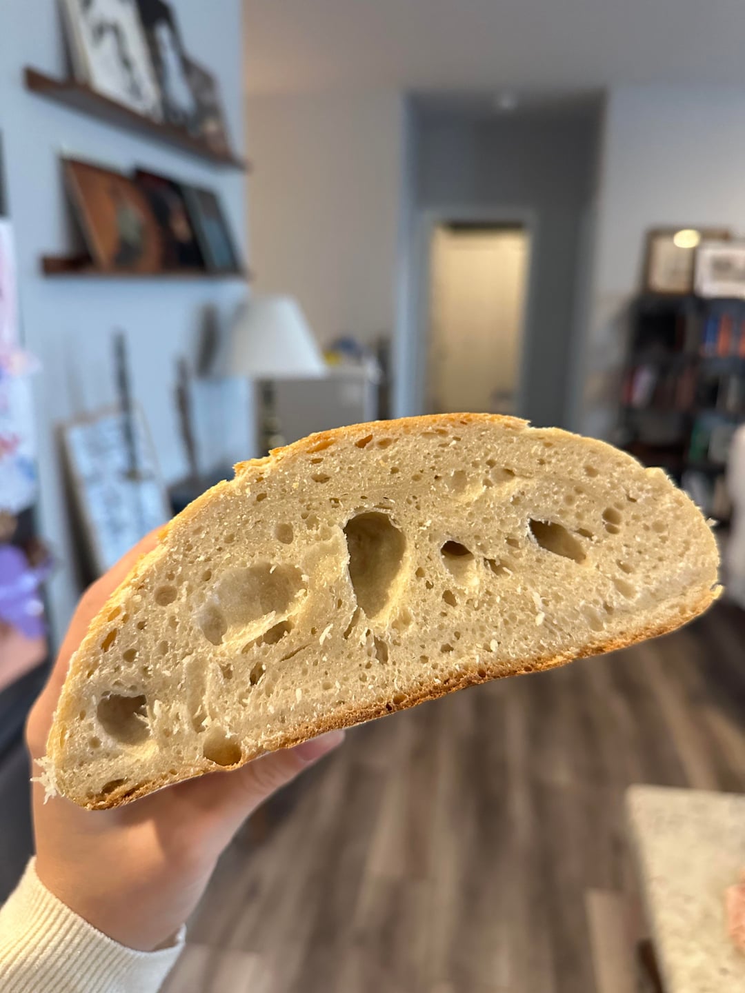 Also, I do 330g water, 100g starter, and 500g flour. Maybe reduce your hydration since that’s kinda high for a beginner.
