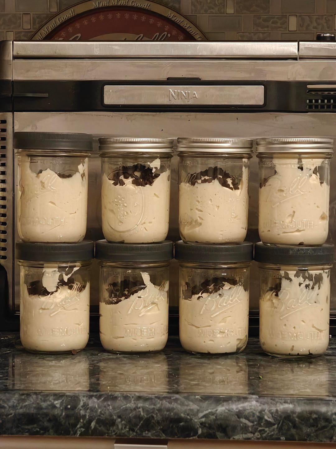Snacks are yogurt pudding cups. Greek yogurt, powdered peanut butter, no sugar vanilla pudding, almond milk to thin it out, and some mini chocolate chips. 200 calories, 3 g fat, 15 g carbs, 26 g protein