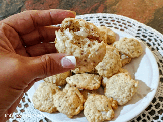 Today I'm here to share with you some delicious cookies with wonderful, healthy ingredients that make snacks fabulous, a moment of great flavor. A week ago, I shared some flaxseed cookies. Today, these cookies I'm sharing include coconut and rolled oats, with a very pleasant result. When we bake cookies, besides spending a pleasant time creating and concentrating on the moment we're living, we also want them to be crunchy so we can savor the flavor of the cookie.
