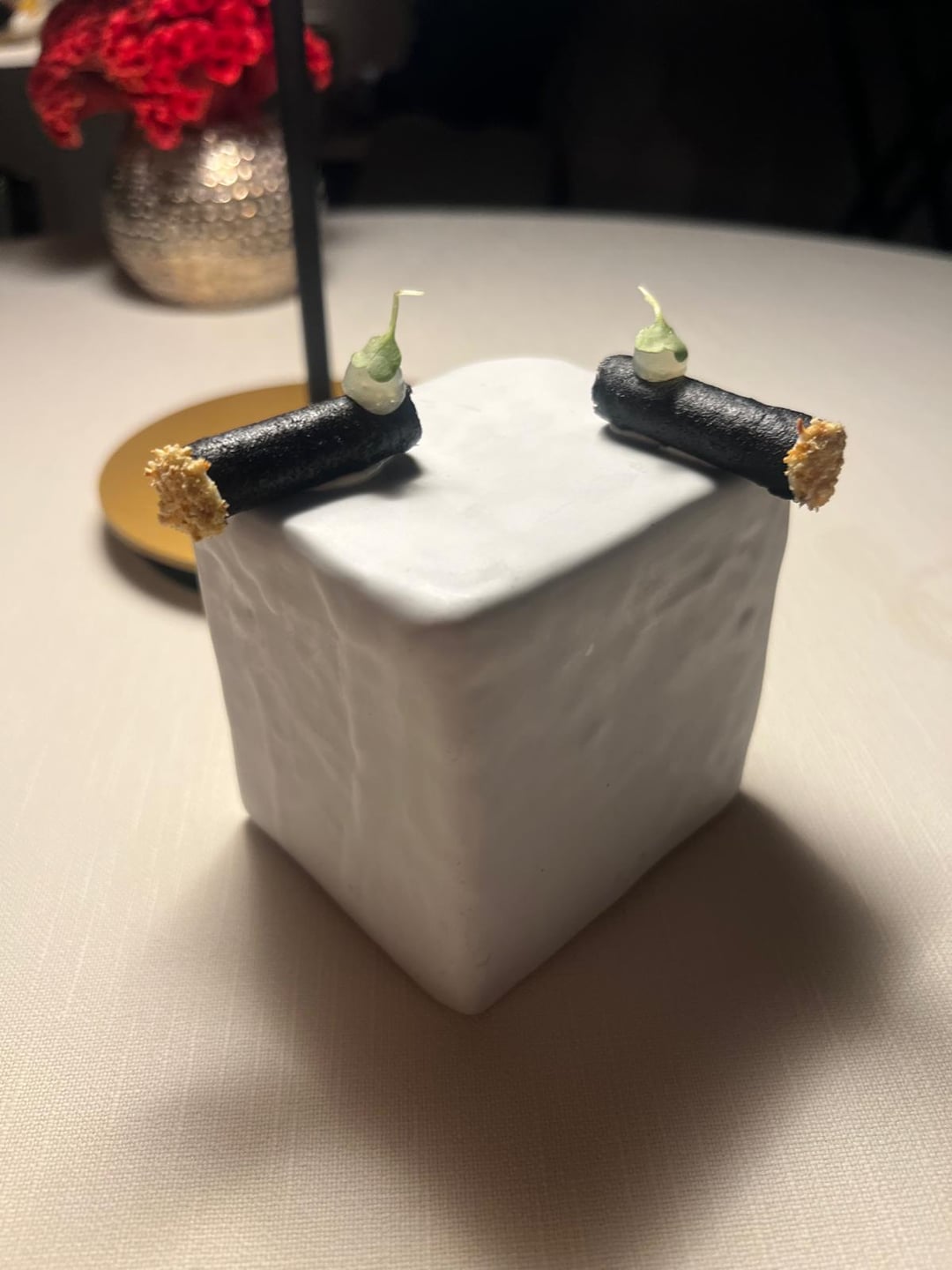 ~Strawberry, kefir, basil sorbet, balsamic vinegar, praline (forgot photo). Surprised by the repeat ingredients. Absent the basil sorbet, the balsamic and the preserved strawberry flavors were repetitive, albeit they were sweet and sour, and more pronounced. Given how refreshing the basil sorbet was, this should've been the palate cleanser, with another dessert as the main (think the 9 course had the pre dessert + peach tonka from 5 course). SO found the dessert very sour, I think the average diner would appreciate different-tasting desserts.