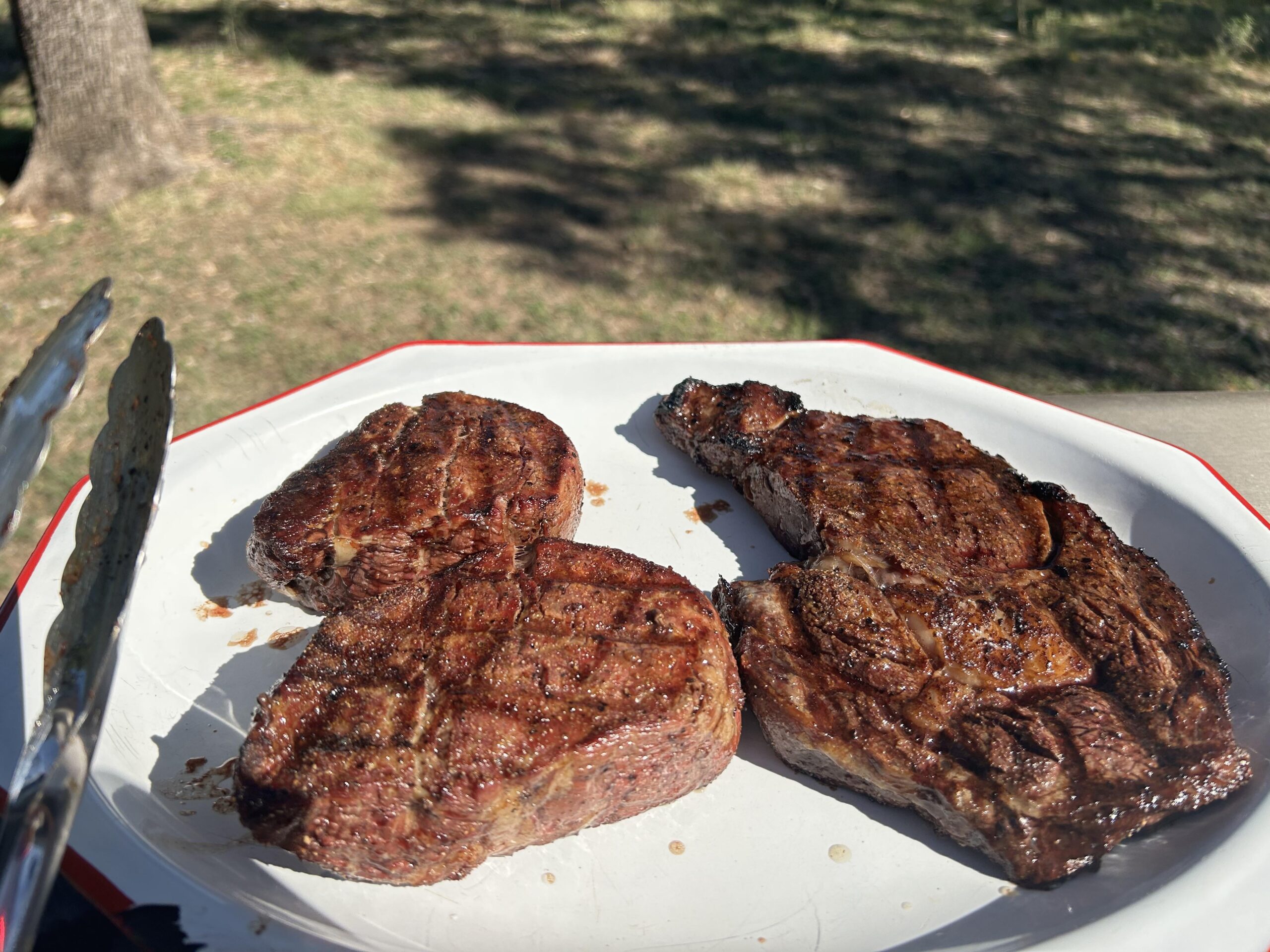 Just kidding they were great! Nothing too special here, tiniest teriyaki drizzle while they rested before cooking and a little steak rub. I’m no artist. Hot and fast on gas