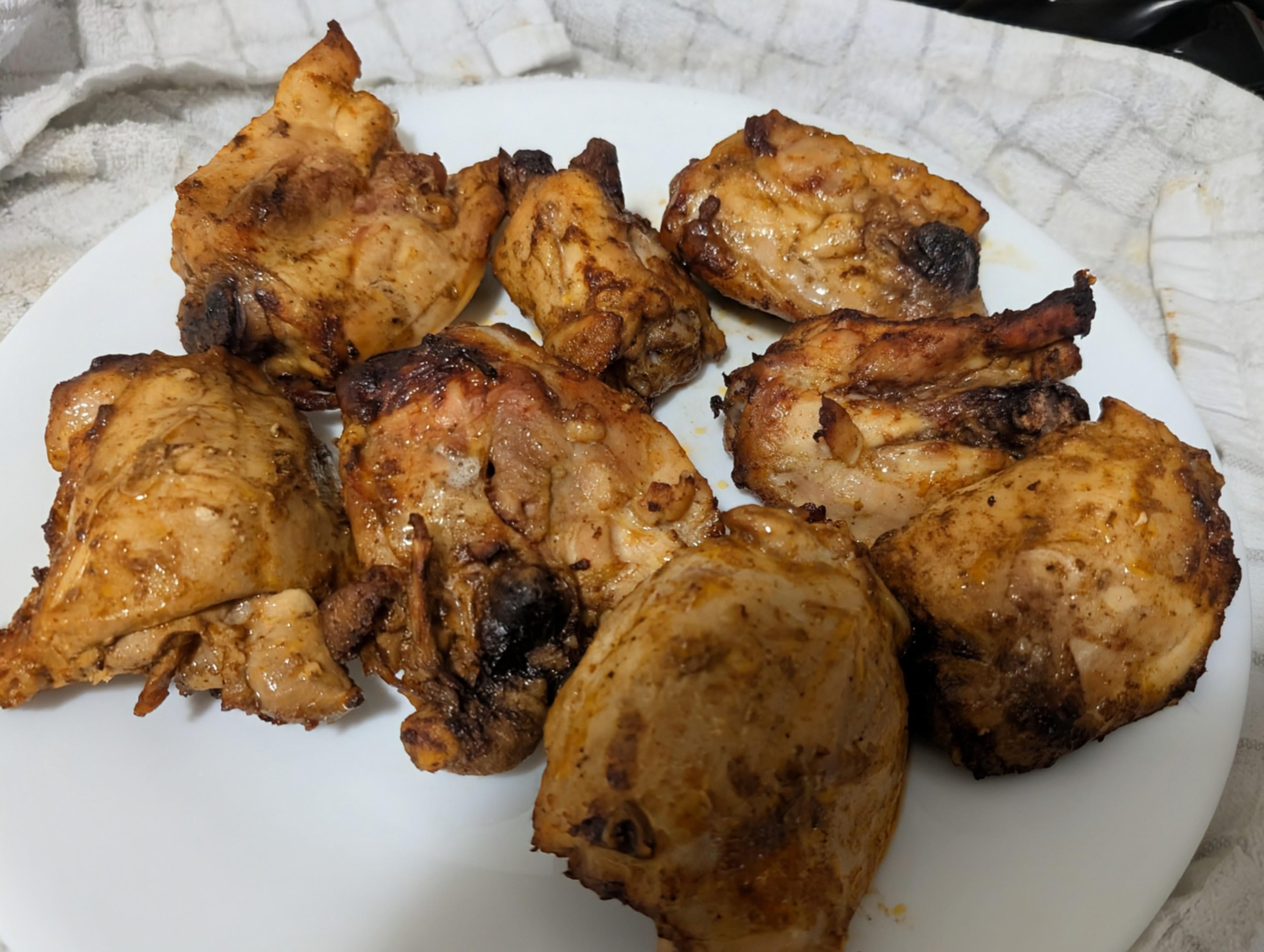 Perfect chicken thighs marinated in a tandoori sauce. Slight perfect char. 171F by styckx Dining and Cooking