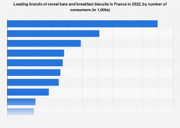 Kantar. “Leading brands of cereal bars and breakfast biscuits in France in 2022, by number of consumers (in 1,000s).” Chart. June 1, 2025. Statista. Accessed November 07, 2025. https://www.statista.com/statistics/435806/cereal-bar-and-breakfast-biscuit-brands-in-france/