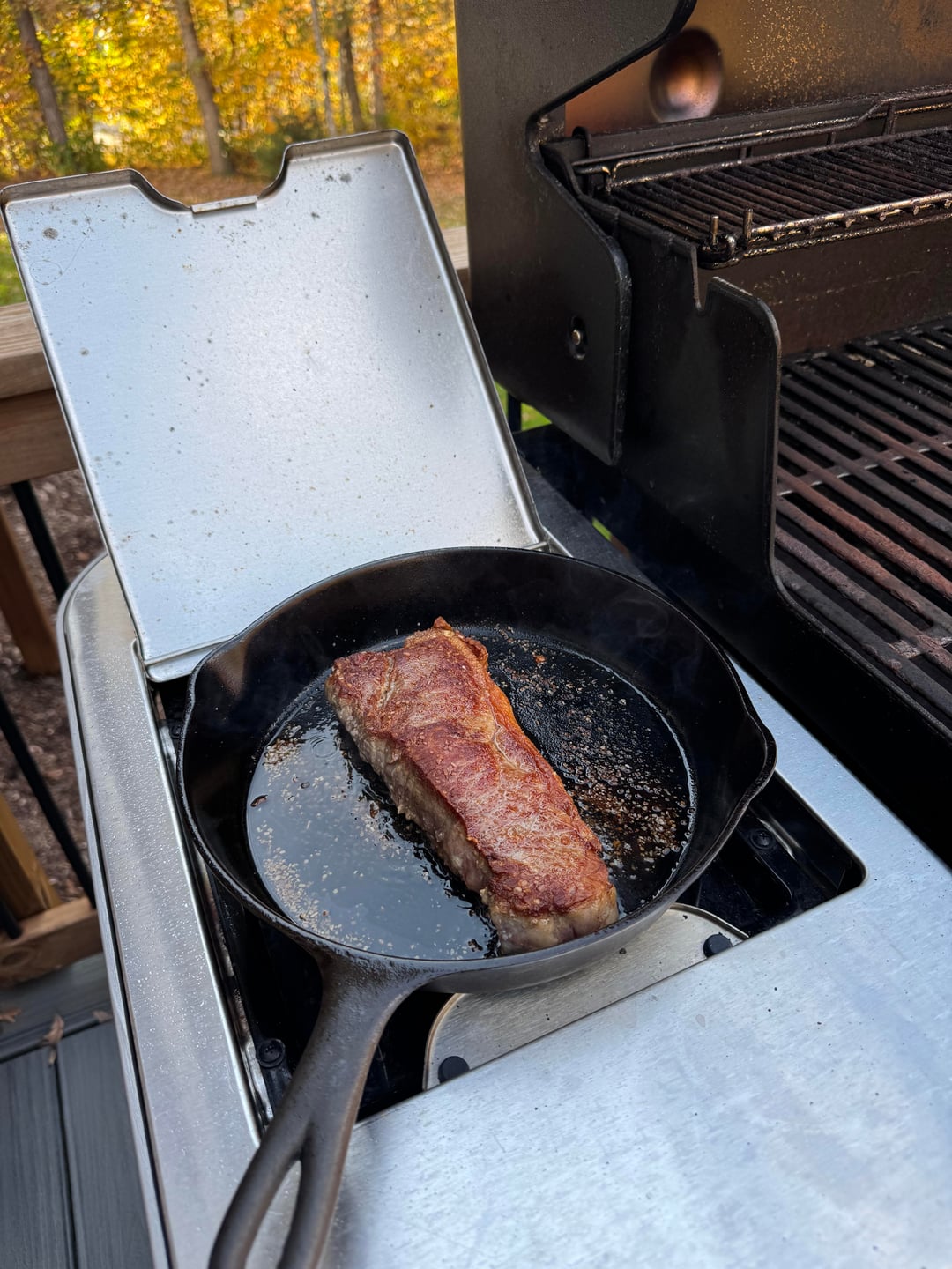 I use my side burner to sear my steaks outside, too. It’s the best.