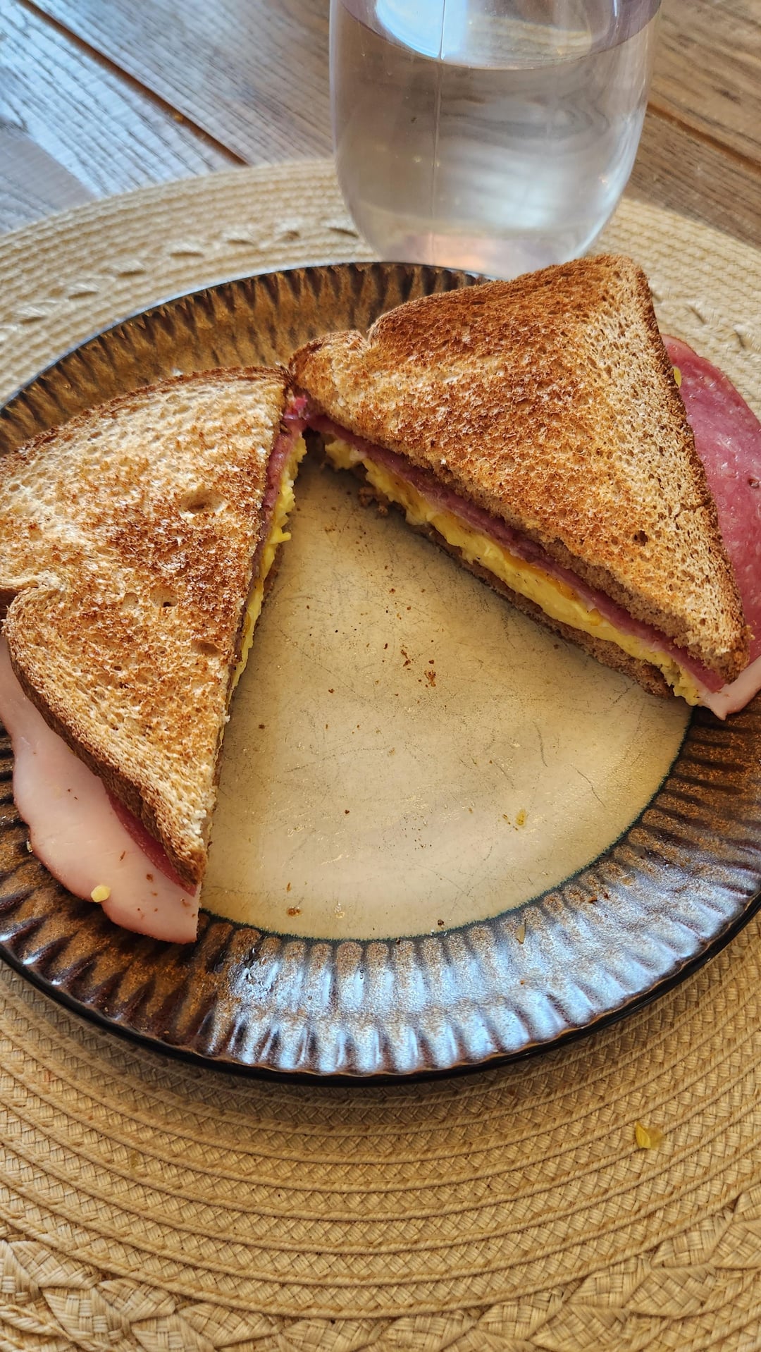 Ham, salami, scrambled eggs with cheese on whole wheat toast by GuavaOdd1975 4 Comments MagazineDelicious151 7 hours ago Looks tasty NaturalSquare5323 7 hours ago Solid Either-Ad6540 6 hours ago Yum 😋 Sussy_Imposter2412 6 hours ago That egg to bread ratio is absolutely perfect.