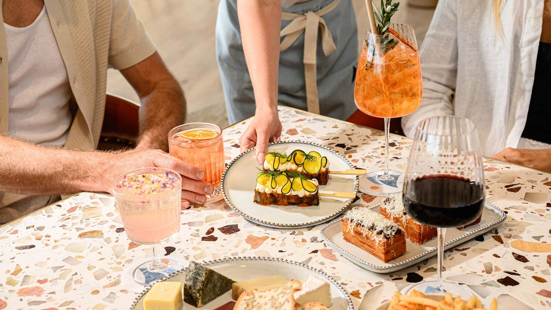 Leading the dining part of the equation, Executive Head Chef Harry Finch has shaped a made-for-sharing menu that heroes local produce. And guests are given plenty of choice, invited to choose a protein and pair it with sides in small or large portions to create a family-style feast. Med-influenced highlights include citrus-cured salmon crudo, pickled mussels and whipped salted cod, while hearty mains span grilled beef cuts with cafe de Paris butter, and slow roasted lamb shoulder with tzatziki.
