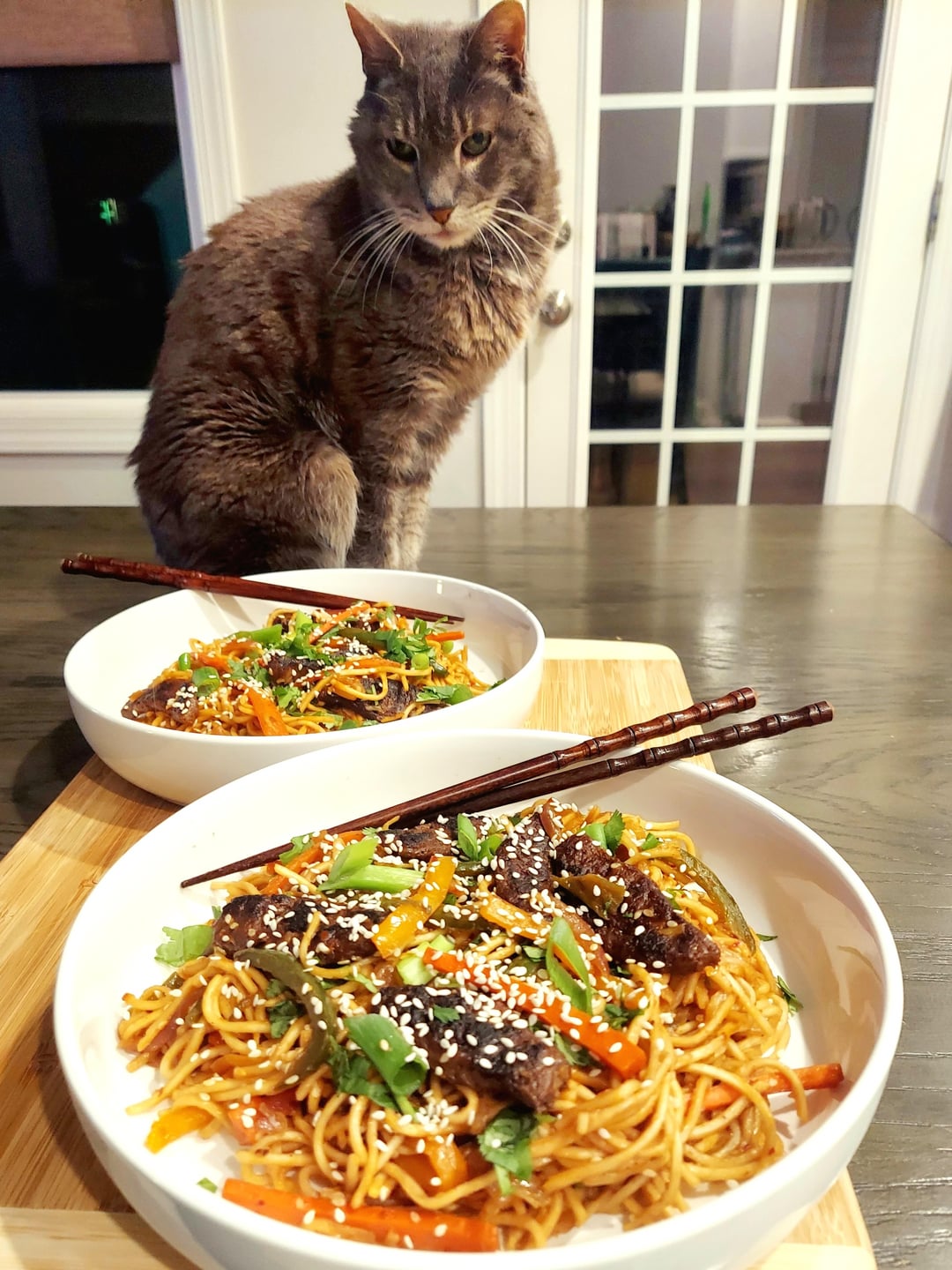 Adorable cat! I take the bulgogi marinade from my job and use it on Beyond steak tips.