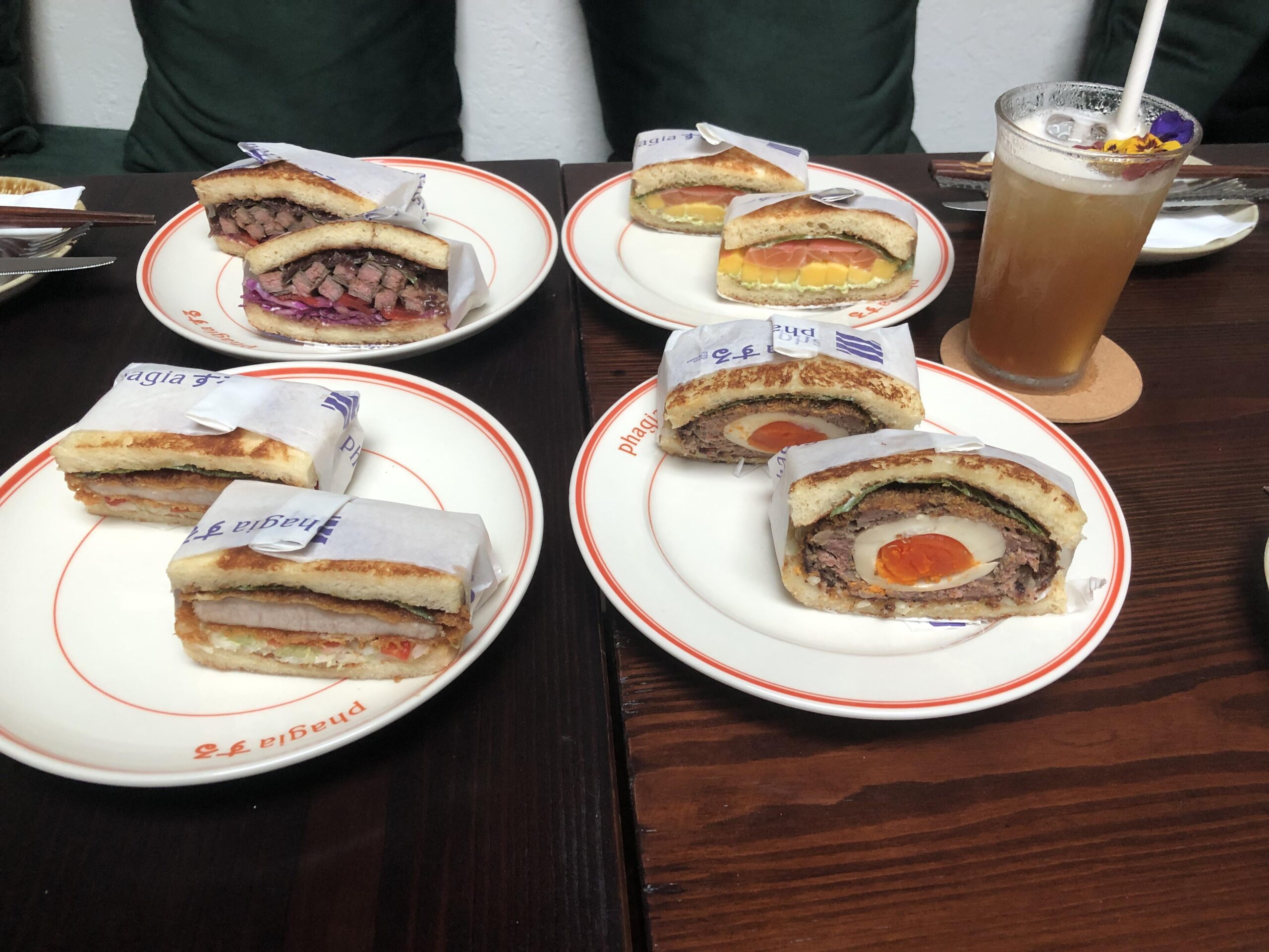 Wagyu steak, salmon mango, katsu and hamburger scotch egg.