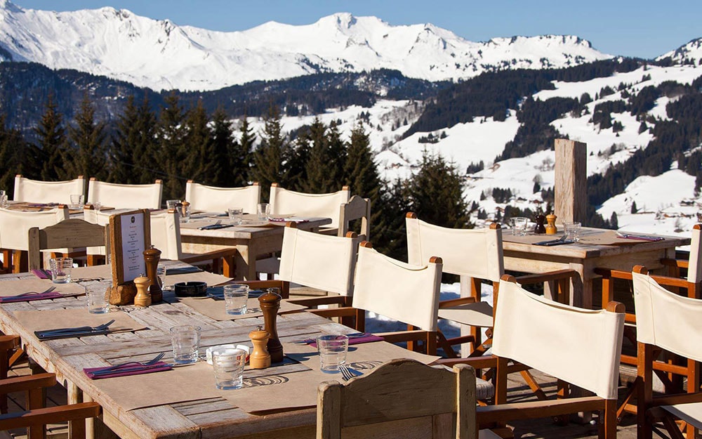 There is no lovelier address for lunch after posing for photos with Mont Blanc on Ranfoilly’s suspended viewing platform at 1,824m. Skiing two minutes down from the panoramic summit (the highest point on the resort’s Chavannes side), snap out your skis into this traditional stone-and-wood chalet.