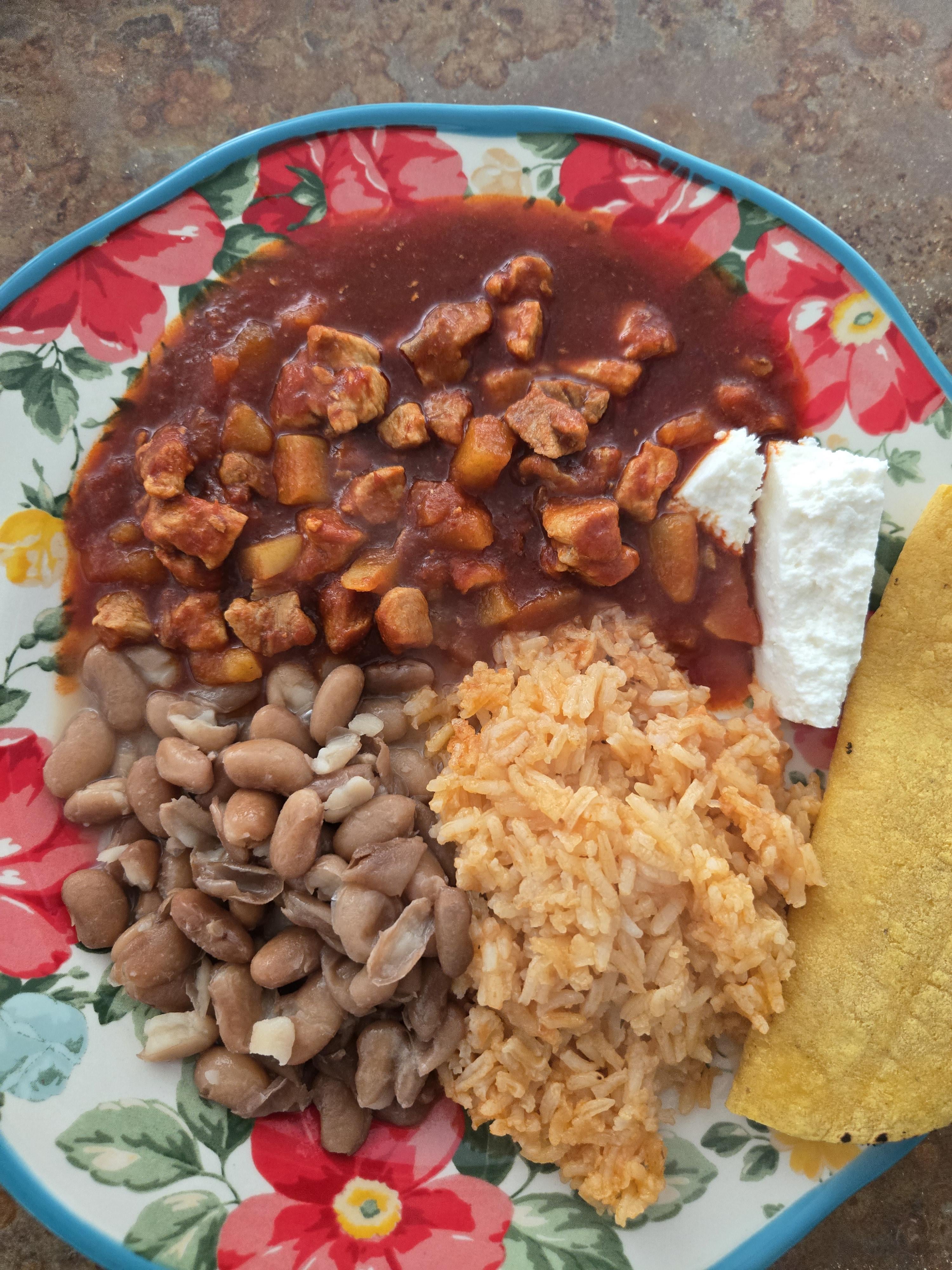 Hoy cocine chile colorado (puerco con papas) Bien picoso, arroz, y frijoles. by Sugarpie06 Dining and Cooking