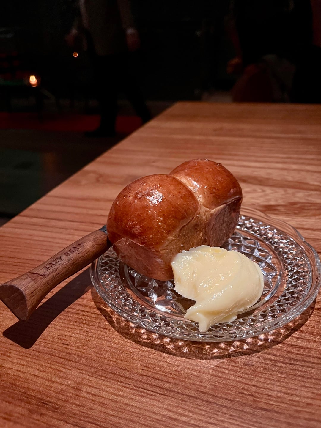 Milk bread and sourdough esque butter made with a 13 year old culture starter. Bread was piping hot and butter was incredibly rich. I love bread all the time but as it was at EMP, this may has been my favorite course.