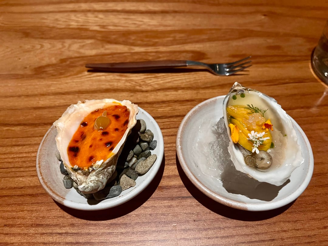 Fourth was “dueling oysters” from hog island, one chilled with gooseberry and marigold, the other broiled with nardello glaçage and piquinho peppers. Then contrast of tart and cold with warm and piquant added to the complexity for sure.