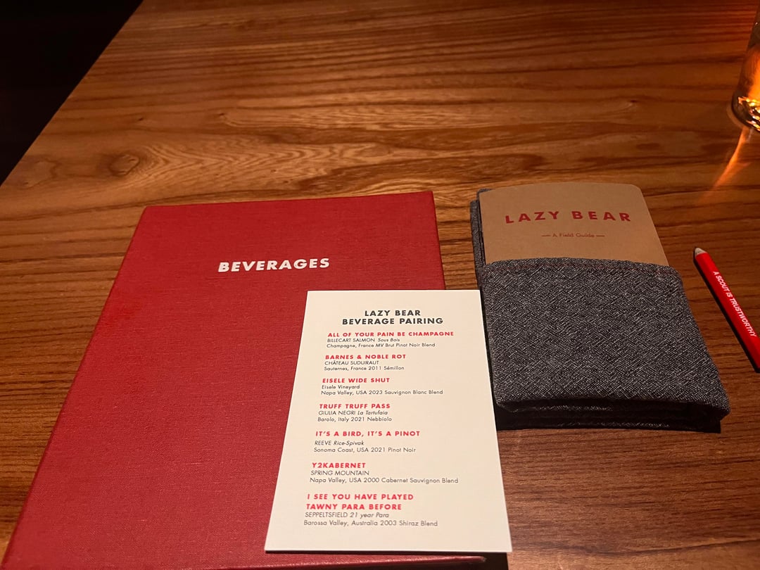 I had the same somm on the night I visited, and was perched in the same spot as you are. glad you enjoyed your experience. I’m not a Cali wine appreciator so just sat on a bottle of Dauvissat for the meal