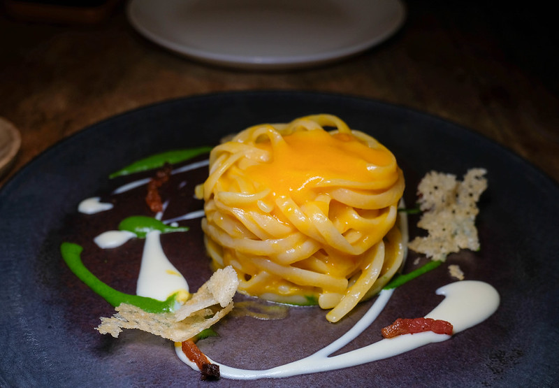 While I loved the urchin pasta, ultimately it was the Linguine al Pomo-d’Oro ($29) which did it for me. This course demonstrated how much care goes into even a seemingly simple tomato pasta. Made with yellow tomatoes, the sauce was bright and tart, layered with basil pesto and crispy guanciale that lent savory depth. A well-balanced dish that highlighted both freshness and comfort.