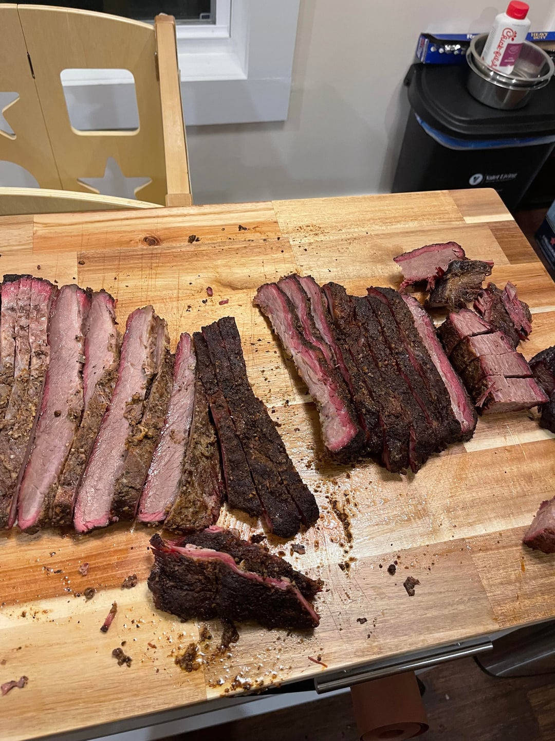 First time smoking brisket on the camp chef woodwind pro by therealhoss 10 Comments tacotruck5 7 hours ago Looks good. How long? lunacyissettingin 7 hours ago Nicely done!! It only gets better from here! wreckedape 7 hours ago Fantastic first go, brother! DifficultElk5474 7 hours ago Well done! [deleted] 7 hours ago [deleted] Low_Fault6490 6 hours ago Nice job, how was it? atom-wan 6 hours ago Looks pretty good. I’d do more pepper/coarser grind next time 404PoptartNotFound 6 hours ago Gotta have the black gloves to make a brisket I guess. rustyshklfrd 5 hours ago Looks good! Slice as you serve it, it can dry out pretty quick once you slice it. Glittering_Map5003 5 hours ago Thumbs up bud thumbs freakin up