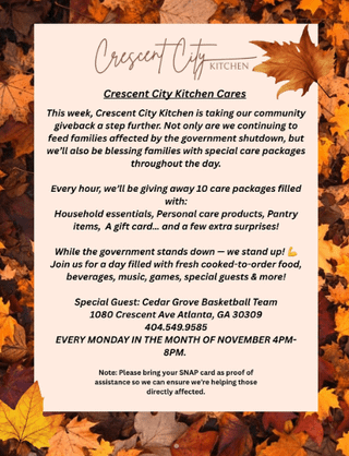 Crescent City is really stepping up for folks in the Atlanta area, I saw this on the news and wanted to share for anyone who may need it.