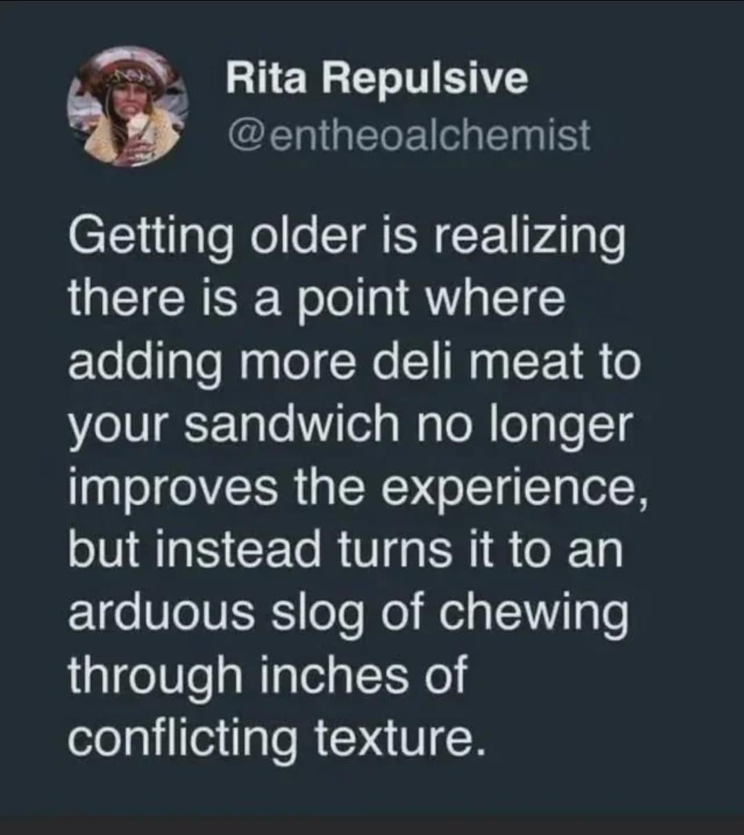 I don’t know of it’s a sign of getting older, but I do think it’s a sign of a good sandwich.
