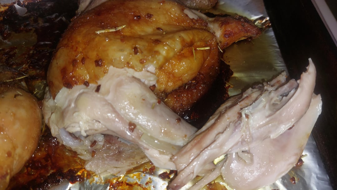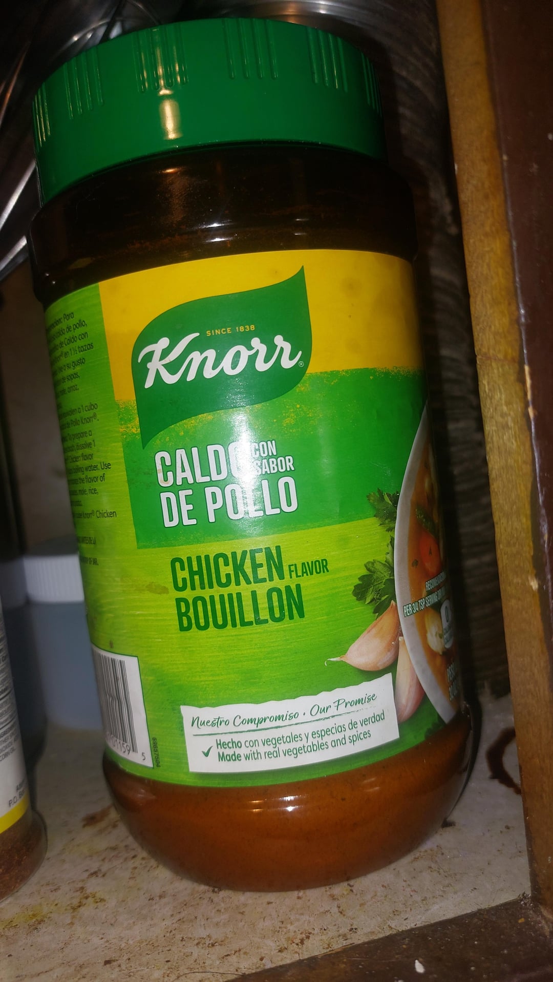 Chicken bullion a touch of soy sauce olive oil splash of vinegar garlic onion rosemary marinade, I like Knorr for the msg.