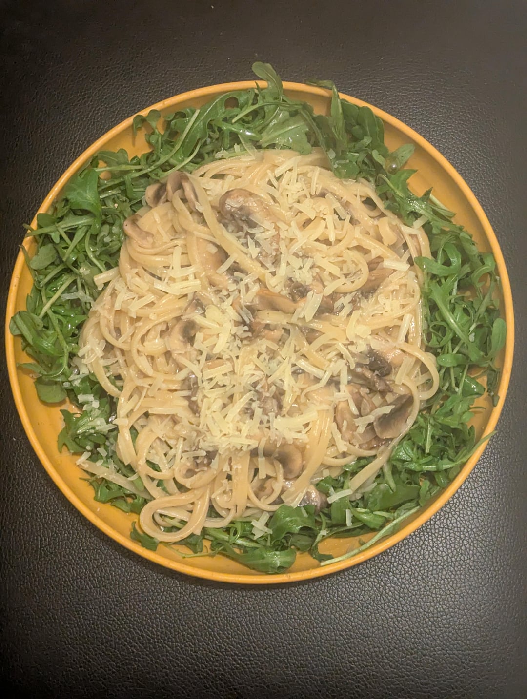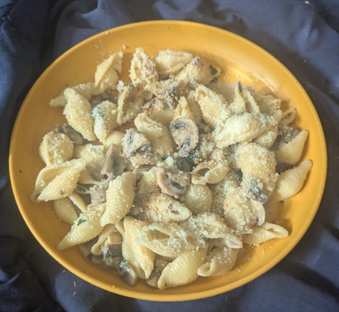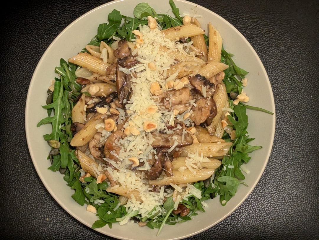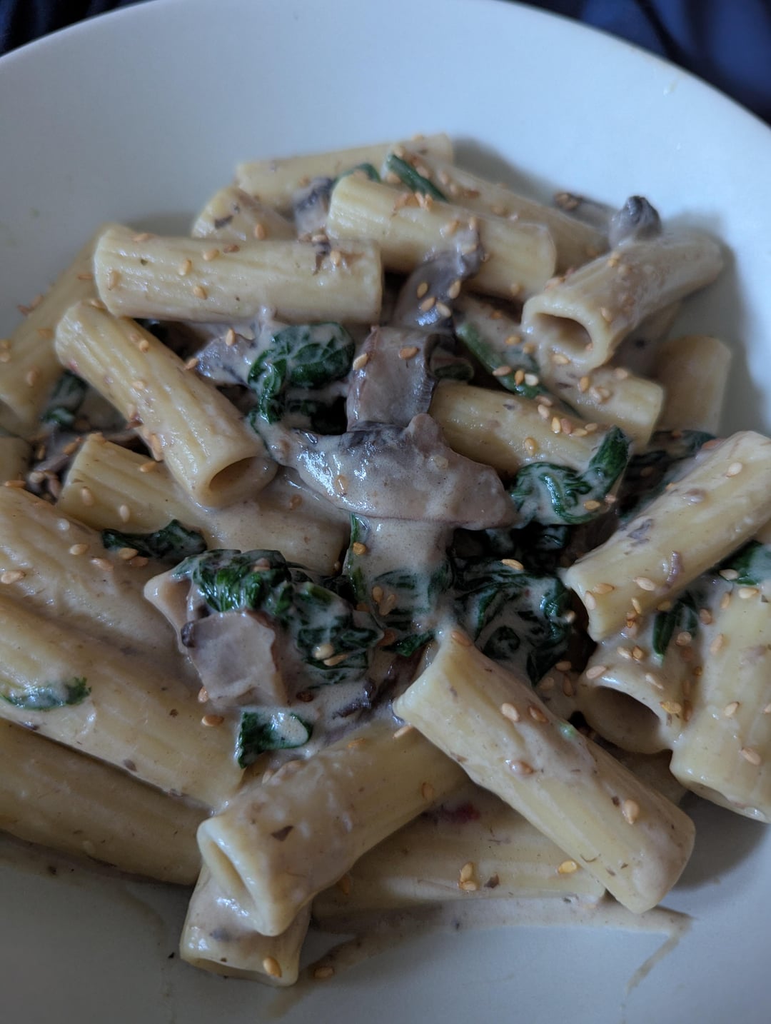 15- Rigatoni with portobello mushroom and spinach sauce (+ I added sesame seed to top it all)