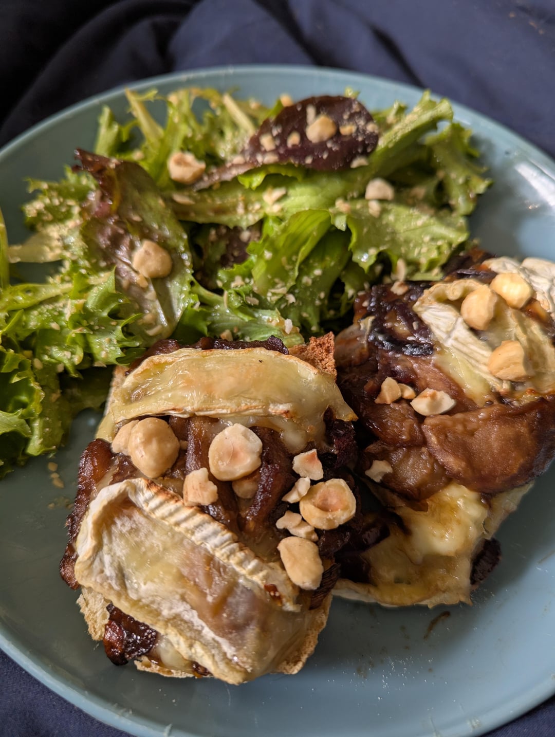 13- Toasts from Normandy (with an onion and apple chutney and Camembert Cheese) with salad with apple, hazelnut and honey dressing.