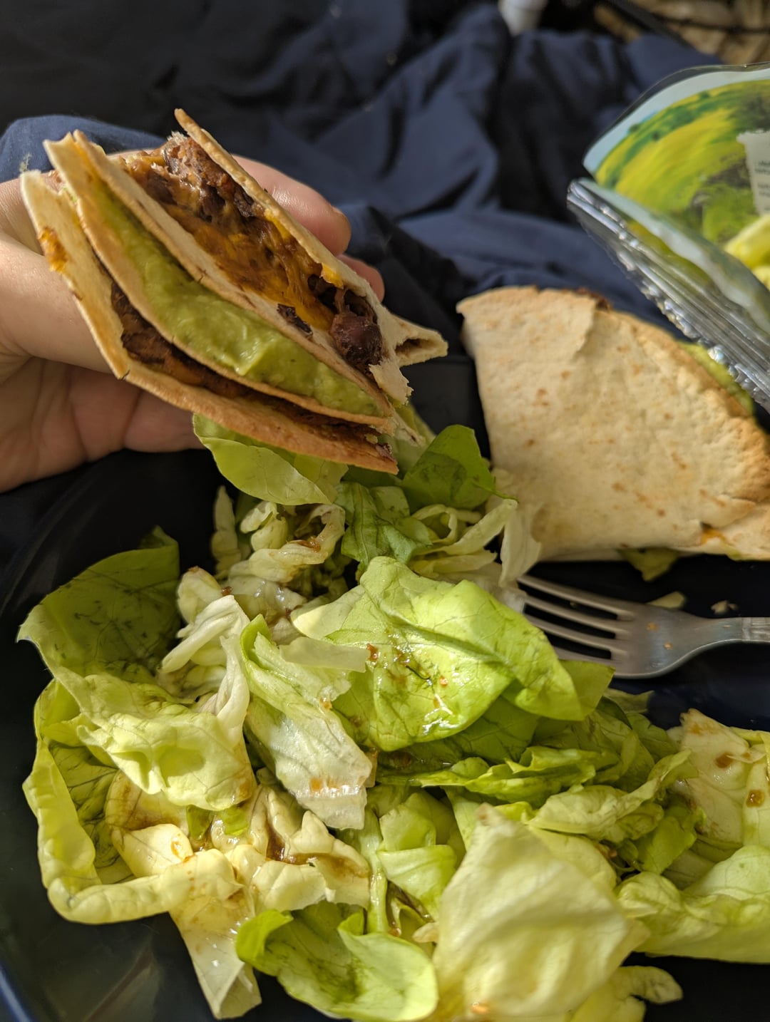 14- Cheesy enchiladas with black beans and salad and sweet potato fries (they're not on the picture but they were really 👍)