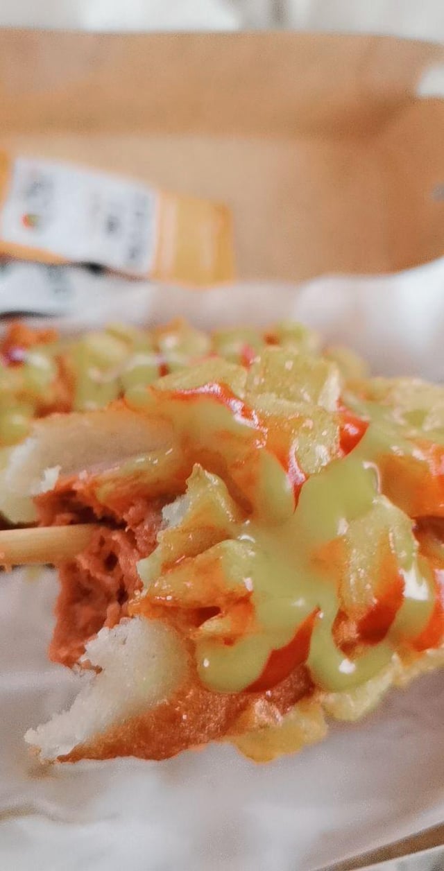Lemme just say… mozzapotato corn dog is probably the best! I was a little bit skeptical about the sugar sprinkled on it tho… but after adding the mustard and ketchup, it’s unforgettable! The little potato cubes that got deepfried along around it made it extra delicious from texture and flavor. I won’t ever get tired of it! I ordered the mozzarella 🧀 and the other one is hotdog 🌭 and of course don’t forget milkis!🥤