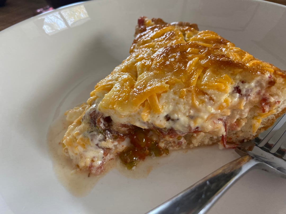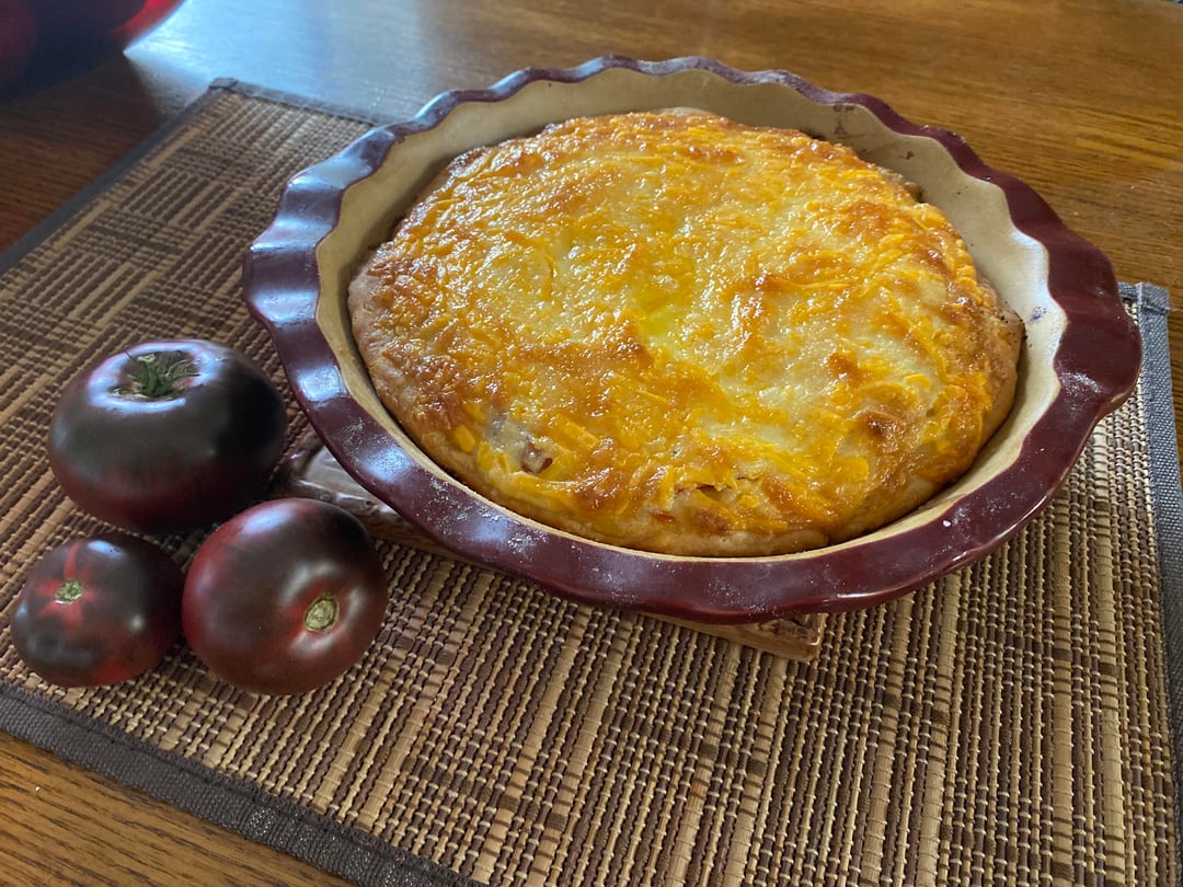 Still eating from the garden in Wisconsin. Tomato pie with biscuit crust