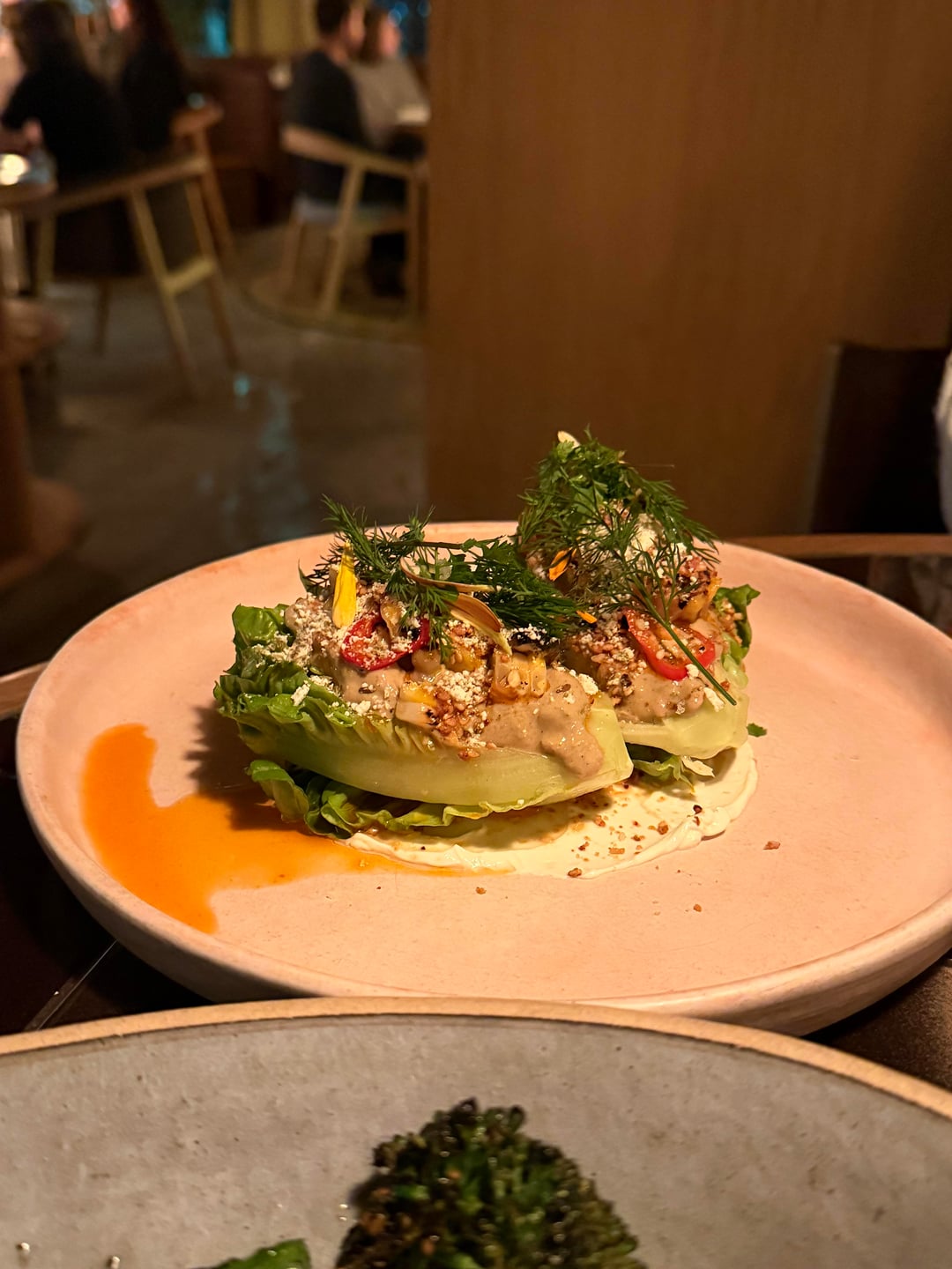 To lighten things up, we had the Salata Arabiya, a refreshing mix of little gems, corn tahini, grilled peppers, and smoked shanklish. It was crunchy, sweet, smoky, and tangy all at once.
