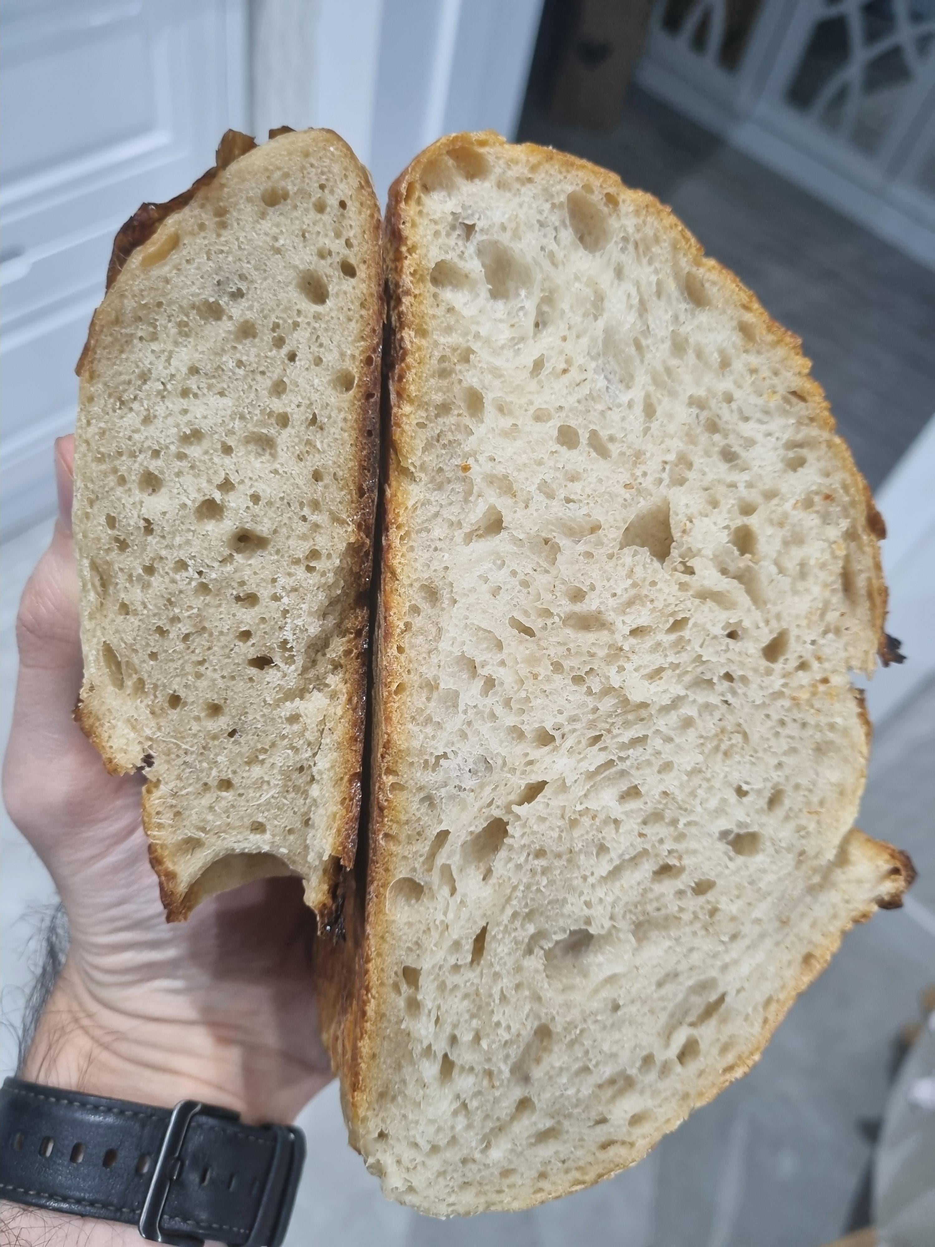 In case anyone wonders, the recipes are same for both (both are %71 final hydration). I just increased bulk fermantation time from 5 to 8 hours, played more with the dough (an extra stretch & fold, tried to create more tension), increased proofing time from 12h to 19h, increased scoring cuts from 1 to 2.