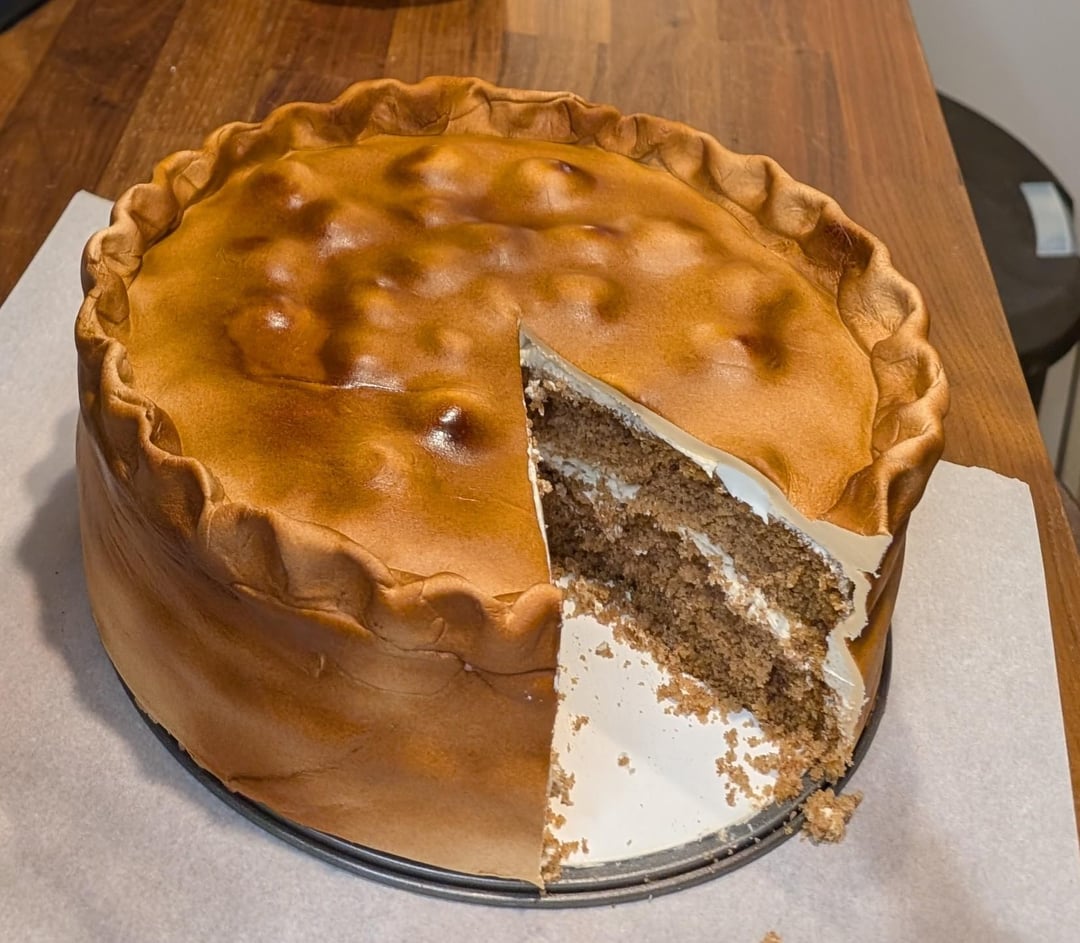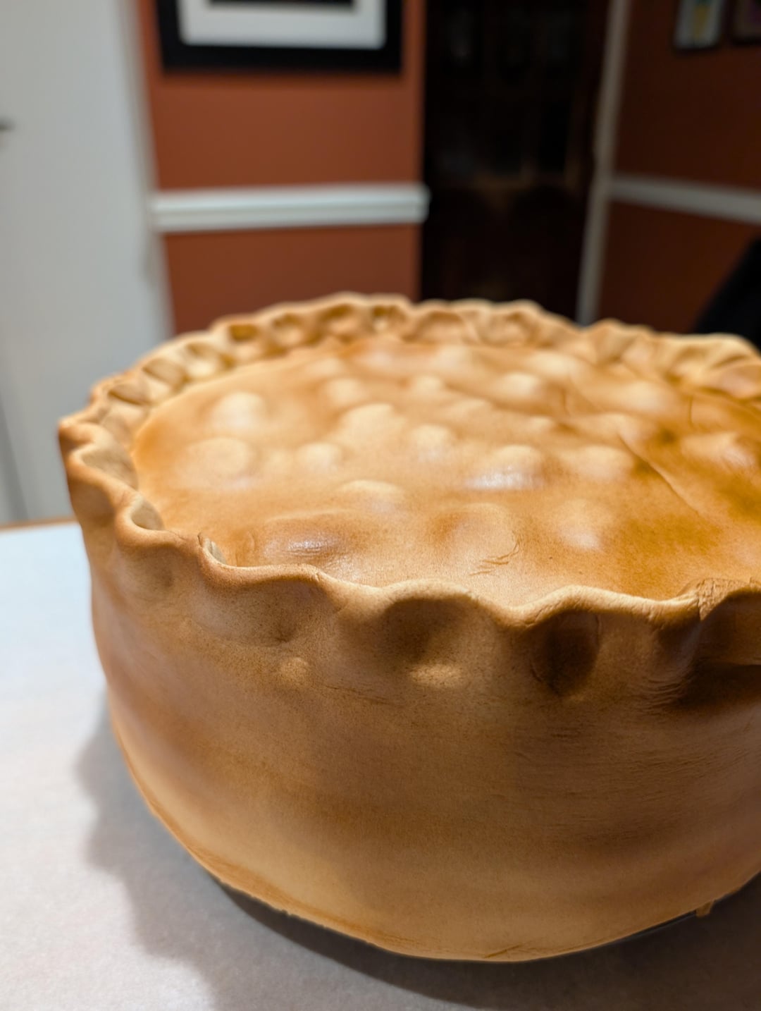 That’s pretty great. The height gives the illusion away a bit. A beef pie wouldn’t hold together like that when sliced. A couple of cubes of “steak” spreading into the cut portion would have really put it over the top.