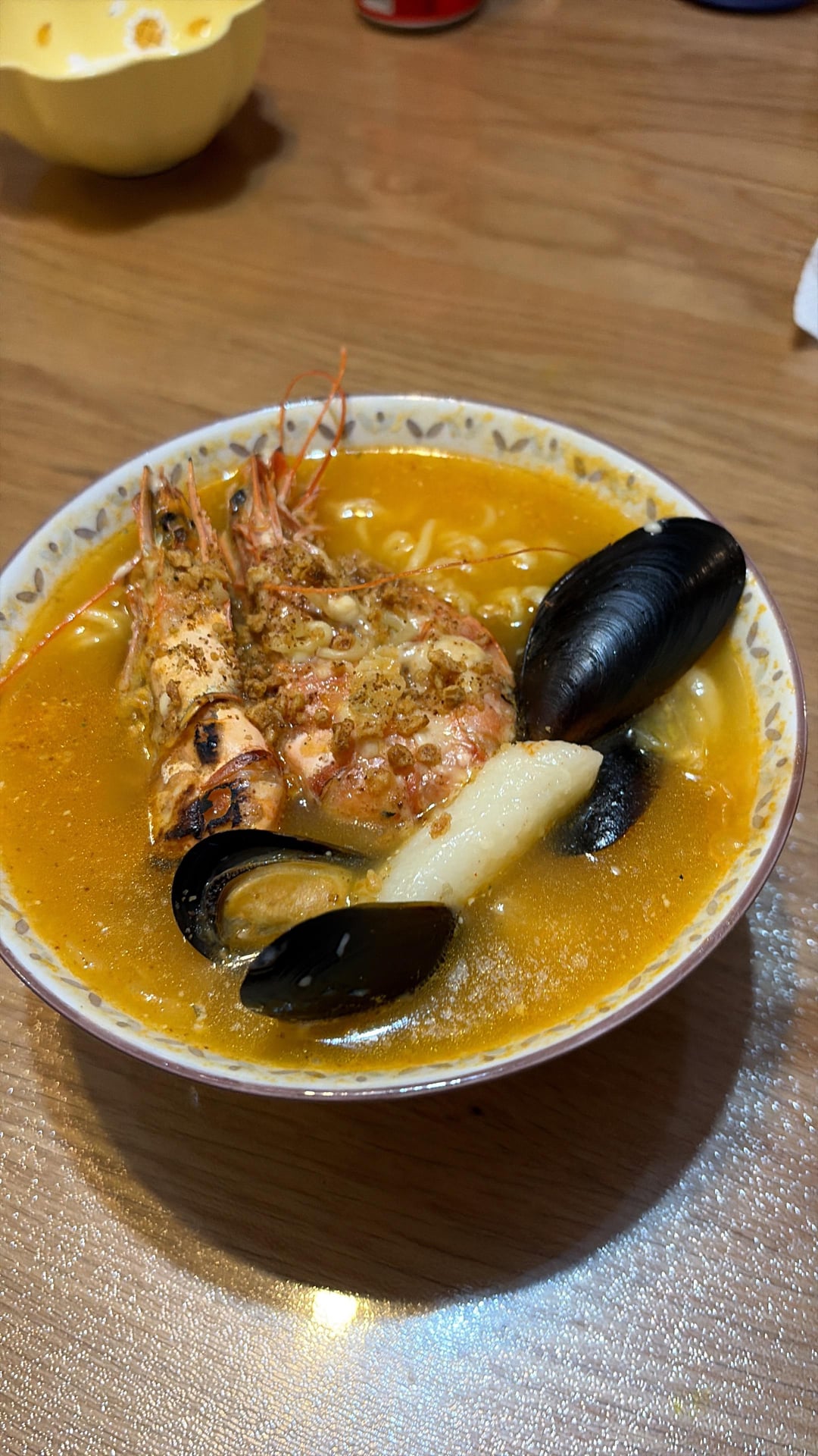 Hastily whipped up a Shin Raymun and threw in some shrimp and mussels. It ain’t a looker but it tasted awesome.