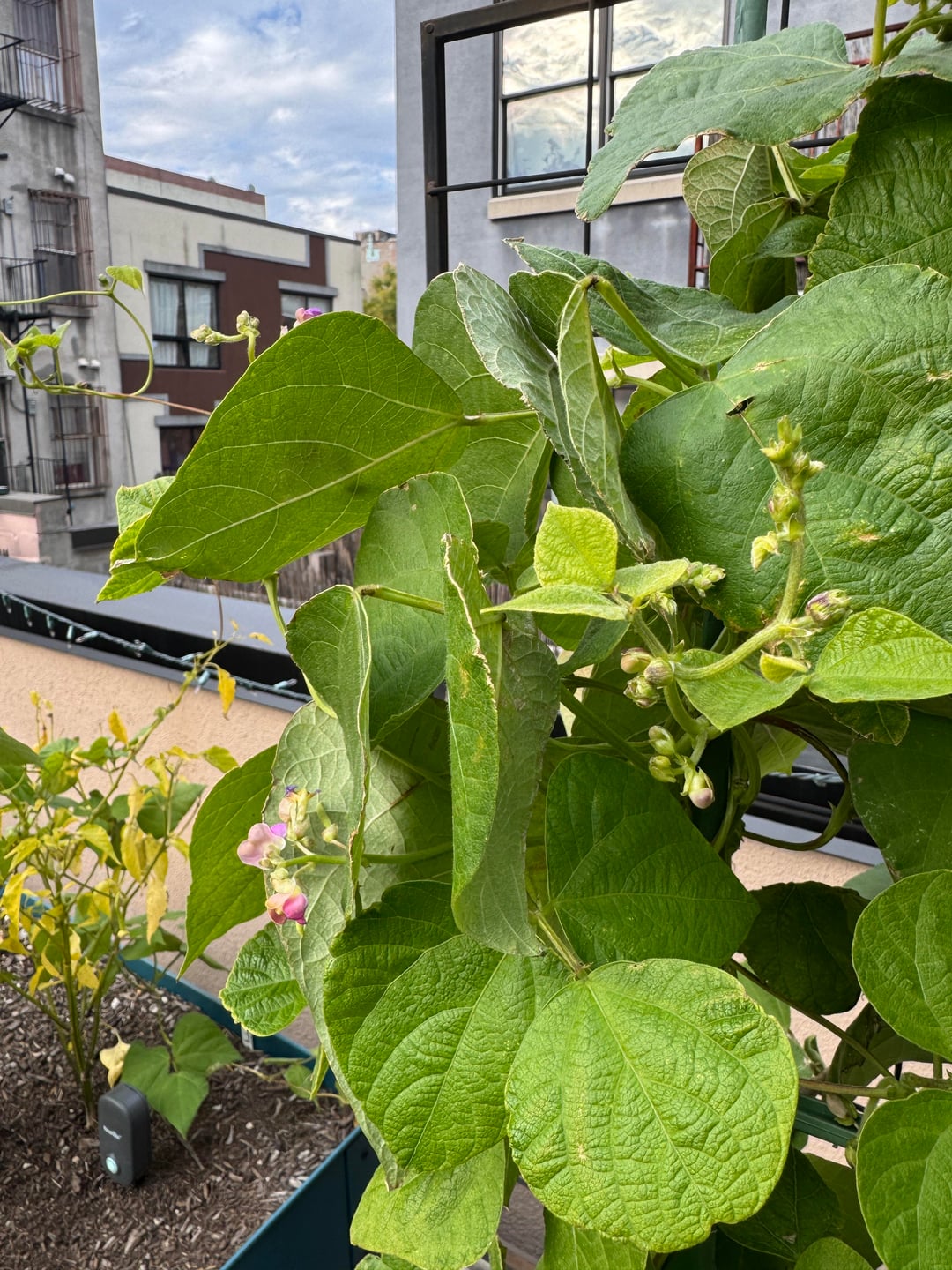 If all you’re using them for is nitrogen fixing, they are at the perfect point to chop and drop. You want to chop and drop at flowering, prior to any beans forming for the most bang for your buck in nitrogen fixing. If you want to get some beans out of it, there are some flowers so you might be able to hold on or use some frost cloth at night to get a small harvest first depending on how bad your weather is going to be. Worse comes to worse, the plant dies before and you chop it then. Up to you.