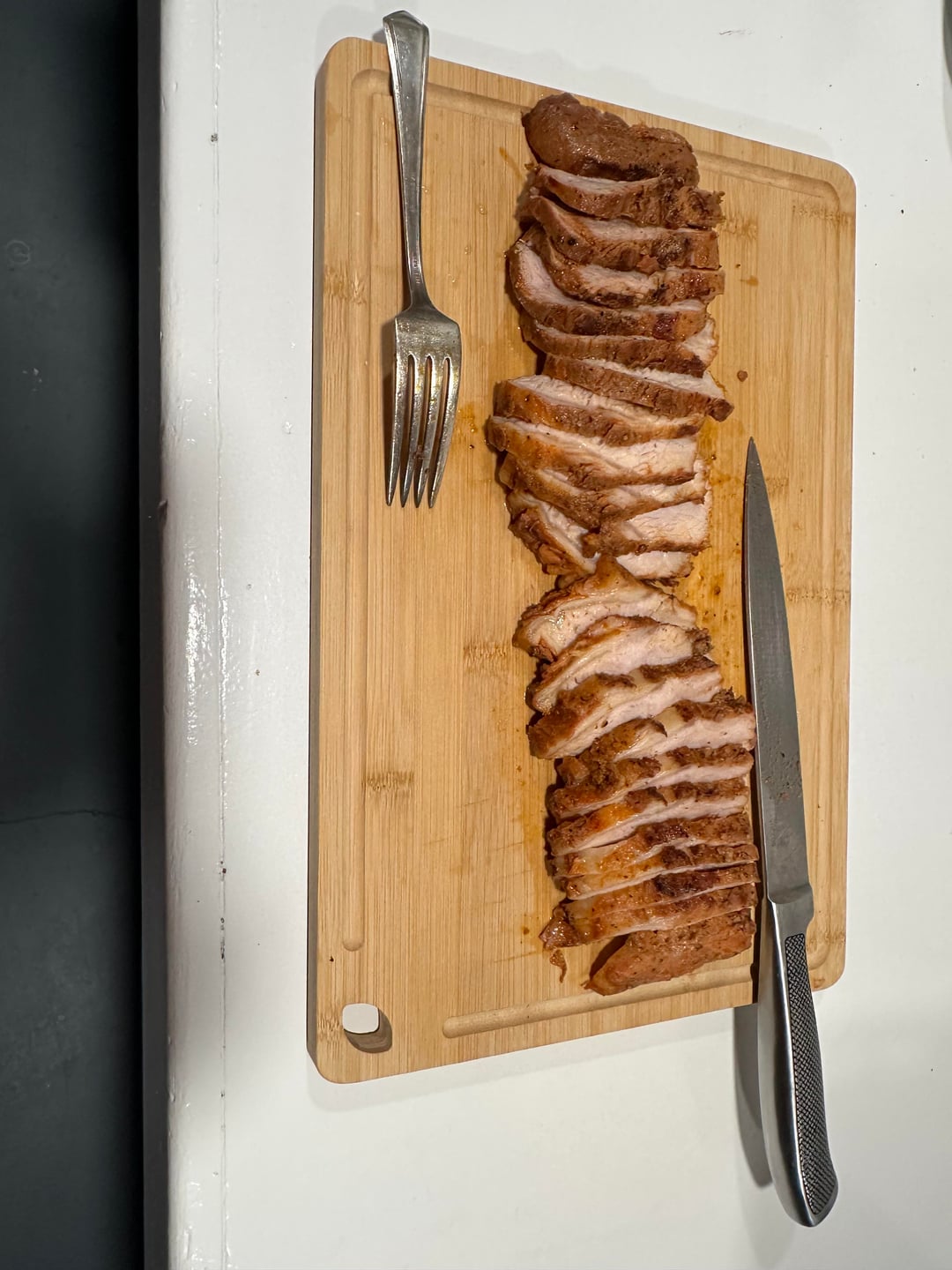 Intended to follow the 140F for 90 mins. I didn’t double check all the air was out of the bag despite weighing it down. Ice bathed it and went to sear on camping grill. Seared it but ended up back in another bag for 1hr at 142 to ensure it was cooked. Didn’t get the pink I was going for, but DAMN was it moist and sliced so easily. Salvaged a delicious tenderloin, practically melted in my mouth. “Onward and upward!”