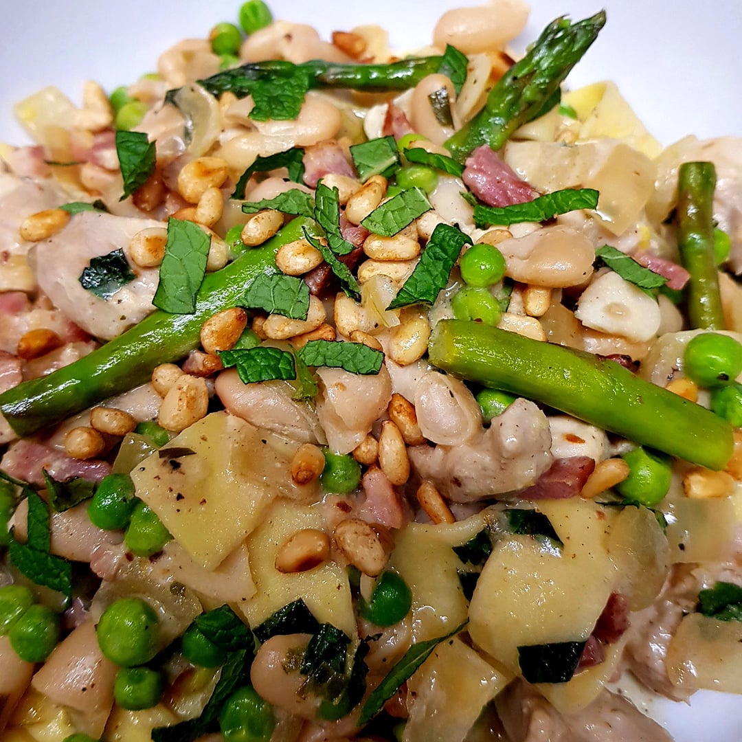 Chicken and Bacon Pappardelle with White Beans, Peas and Asparagus. White Wine Tarragon Sauce, Finished with Fresh Mint and Pine Nuts.by pink_flamingo2003 Dining and Cooking