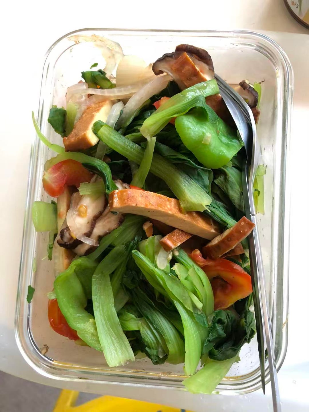 This is my favorite meal to make. You can make it anywhere as long as you have a dish and a microwave. Just chop everything up, put it in a glass bowl or dish, cover, and microwave on high for 10 minutes. When it's done, add your seasonings and give it a stir and you're good to go. When I had an office job I'd just pack all the raw ingredients into a 1000ml glass food dish with a tight-fitting lid and throw it into the microwave 10 minutes before lunchtime. While everyone else was eating greasy takeout or cold leftovers, I'd have a fresh hot meal! I've also made this in my hotel or Airbnb while traveling.