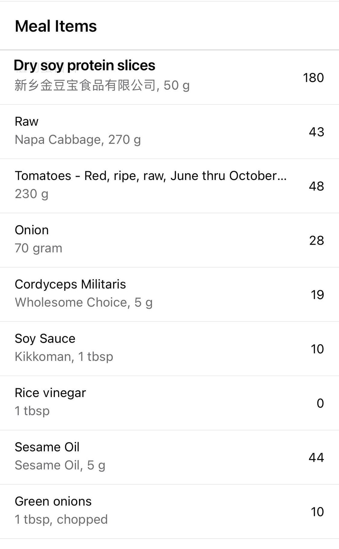- 1 serving plant protein, sliced (I usually use extra firm tofu or rehydrated dried soy protein slices)