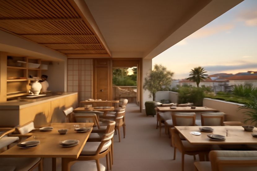 The design of Zenirō is a harmonious blend of Japanese minimalism and Mediterranean warmth. Spanning three levels, it accommodates up to 160 guests. The first two floors house the main restaurant, while the rooftop bar offers sweeping views of the city, providing a relaxed yet vibrant space for evening cocktails.