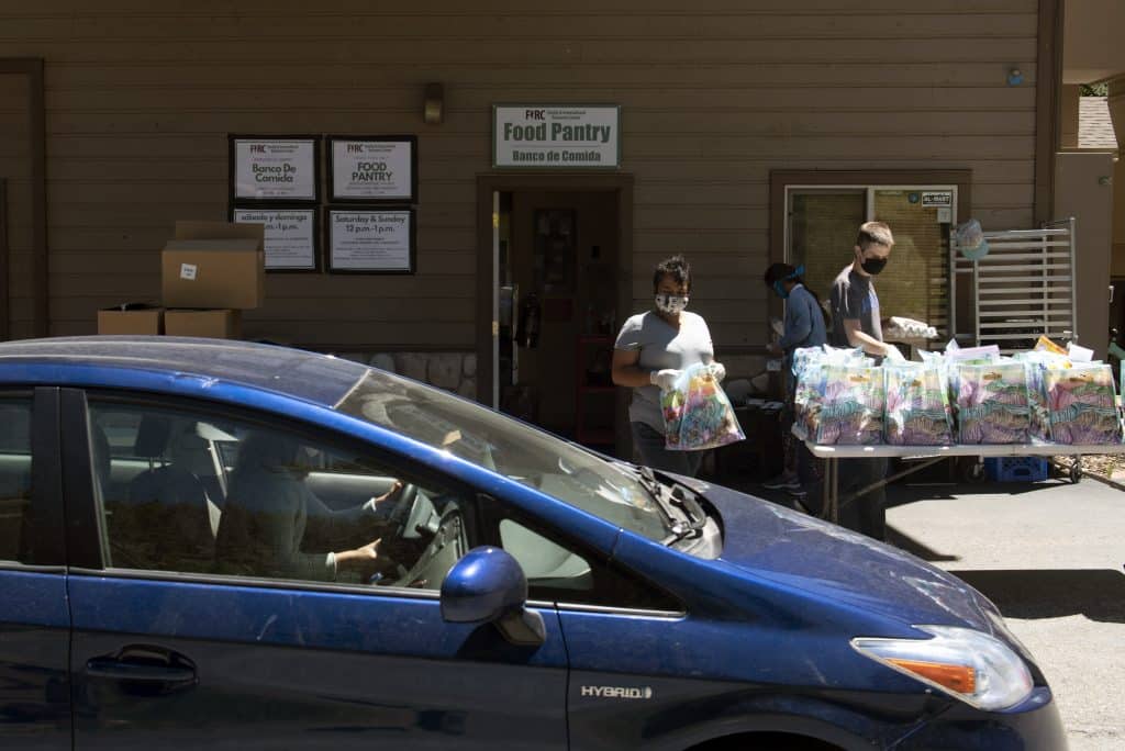 Staff with the Family & Intercultural Resource Center, prepare to hand out supplies at drive-through food bank in Breckenridge on Monday, June 8, 2020. The resource center is partnering with other nonprofits to put on Pop-Up Food Shares, which are additional food distributions out of its food market in Dillon, during the pause in SNAP benefits.