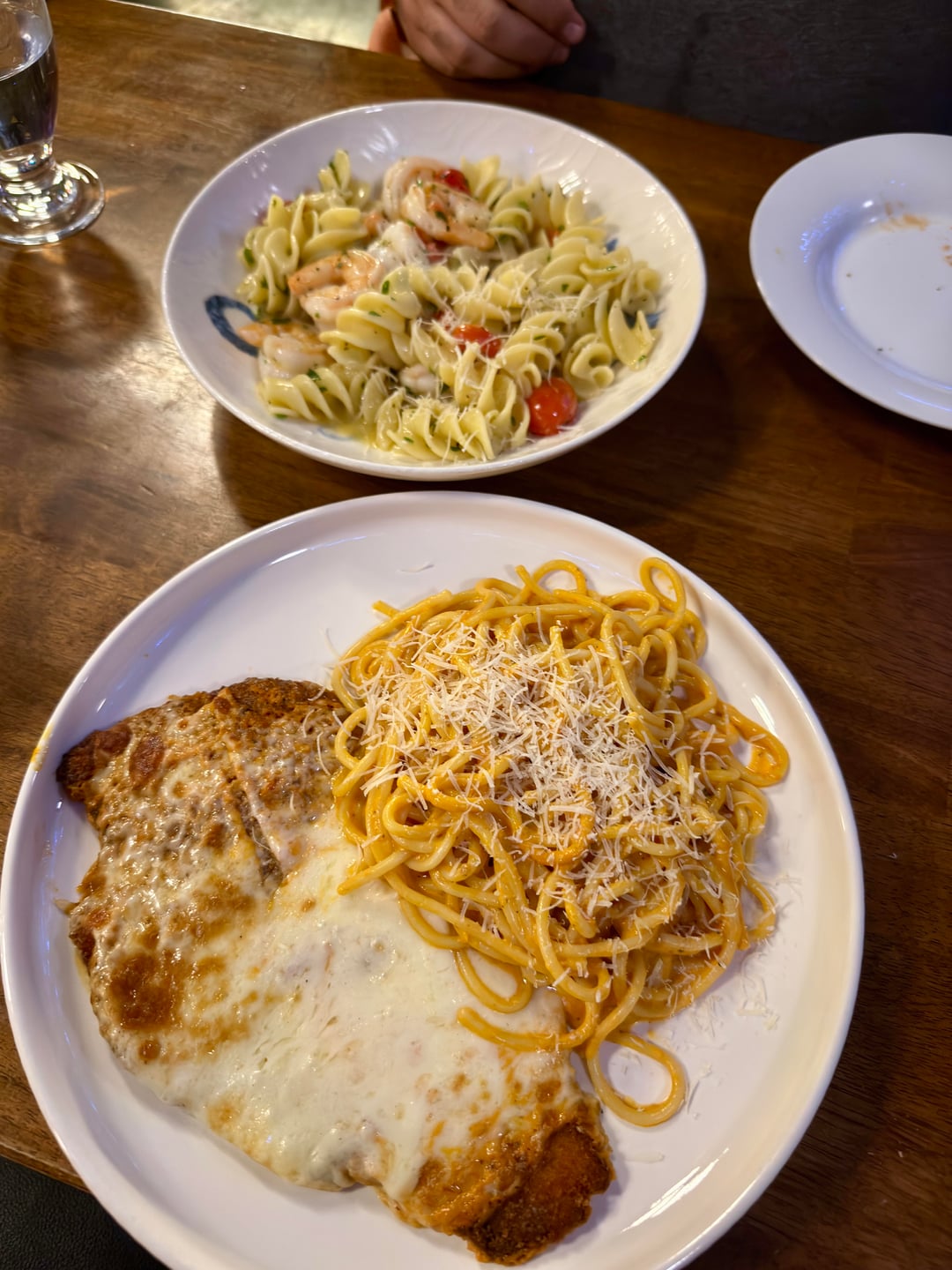 I enjoyed eating here, we went on a Sunday night and it was super slow and relaxed, food was good and you get good portions, you can see the staff cooking food from your table and it smells great, the chicken parmigiana filled me up I had to take some of it home, the mozzarella they use is delicious, especially on the pizza.