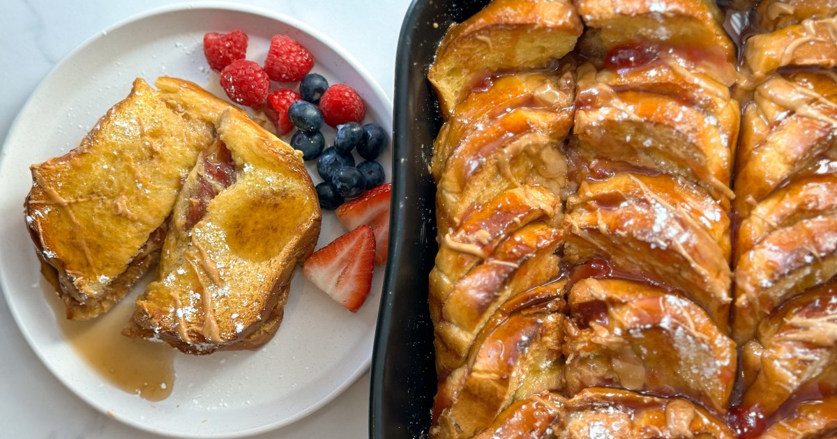 Making brunch for a crowd is usually a labor-intensive task, but with this recipe, it’s so easy to serve your loved ones a fun and creative brunch. All you do is assemble the PB&J sandwiches, pour the custard on top and bake.