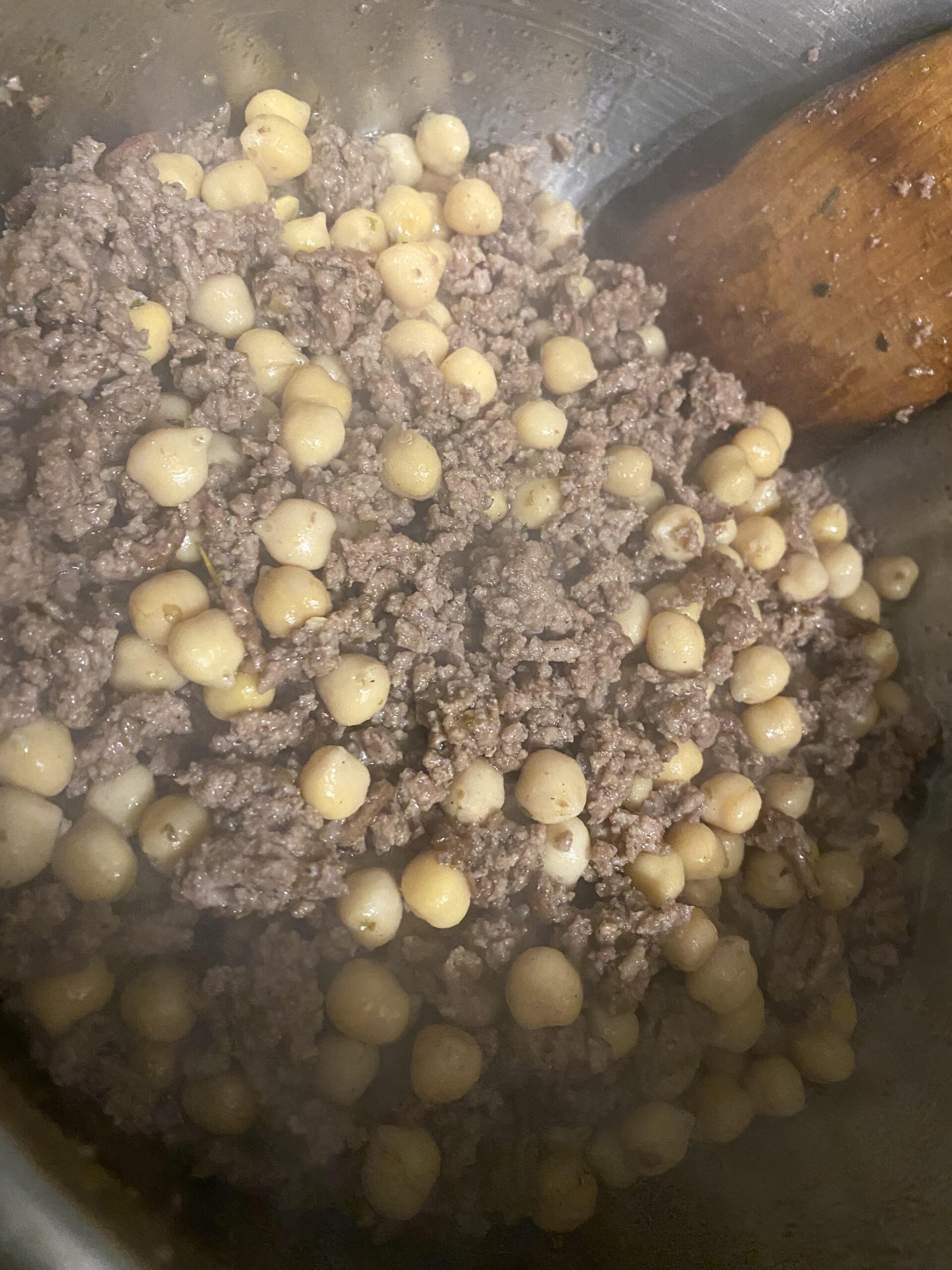 Add a can of diced tomatoes and some seasoning and I’m down. This just looks like browned hamburger meat and chickpeas