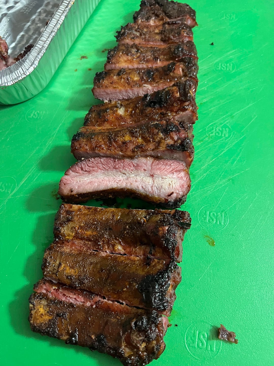 I cant really help you on the ribs. Any time I cooked beef I like to use meat church holy cow. Most of my family prefers pulled or chopped beef vs. Sliced, I usually cook to 205 ish internal and then add some seasoning as I chop it up.