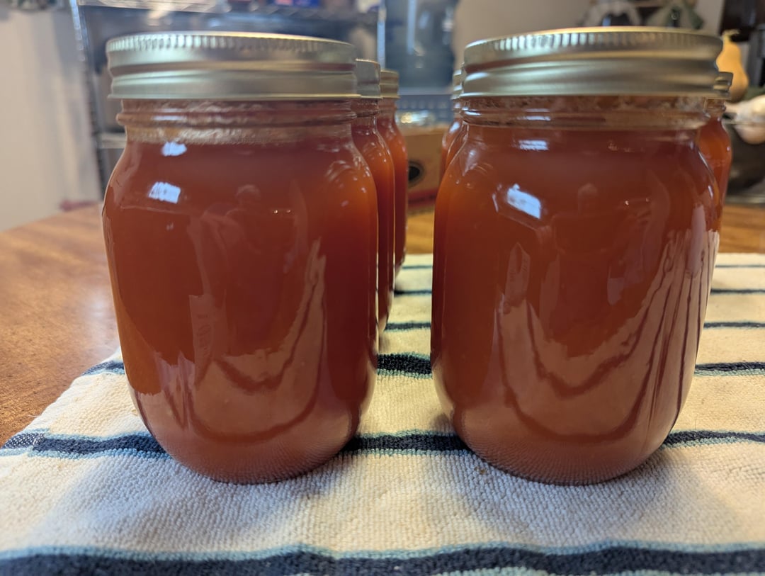 We were running low on freezer space so I had to deal with all of our tomatoes. 8 pints of tomato sauce and 4 pints of the Victorian BBQ sauce from the Bernardin book. I'm hurting but the sauce is so pretty 😍