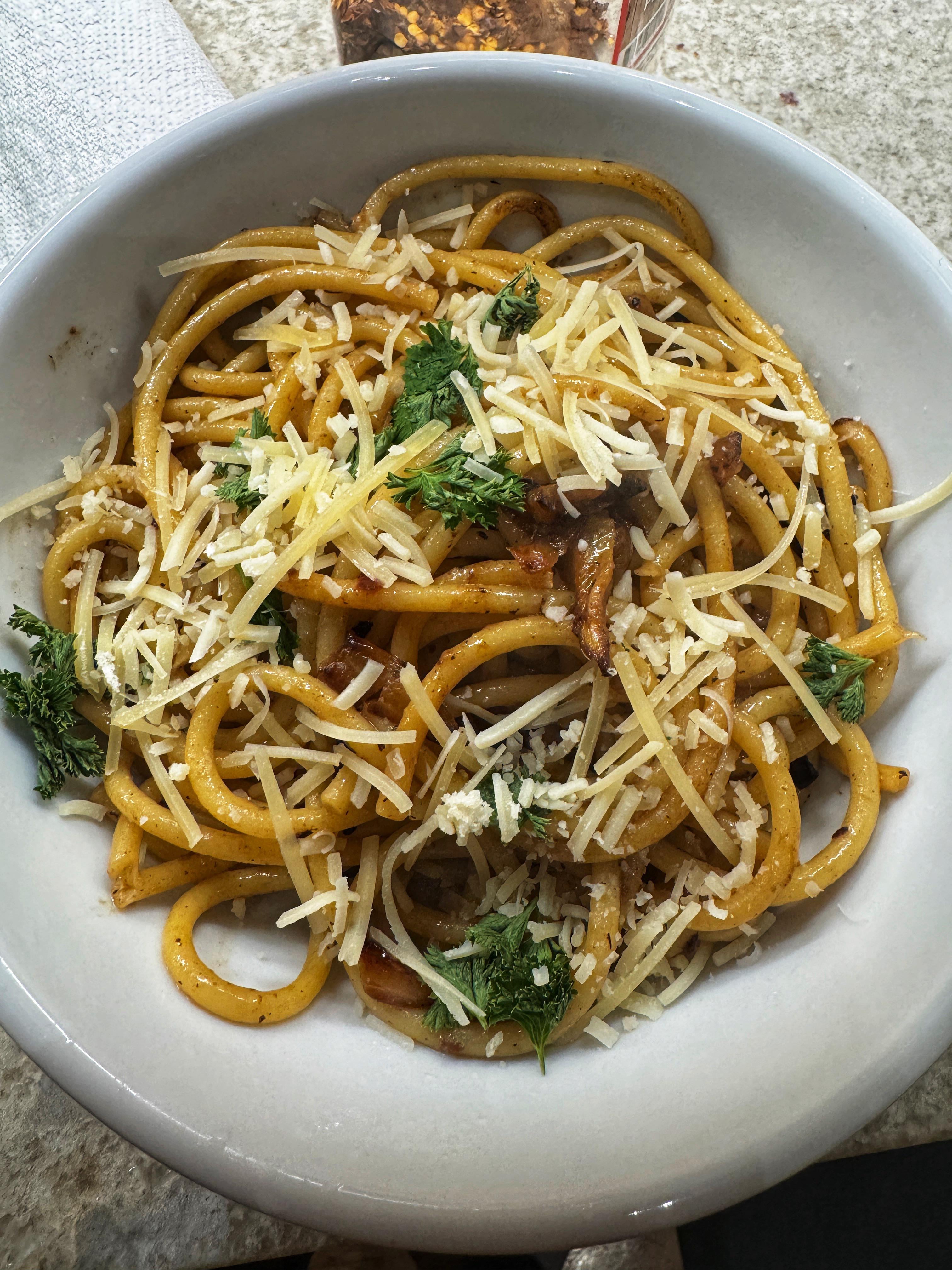 I posted a link to the book tinned fish last week and people wanted photos. Wife's flight was canceled tonight so home alone and remade my anchovy pasta. Anchovy butter, olive oil garlic Anchovies a little parsley, and I added a little ground pepper with some Parmesan. Super easy.
