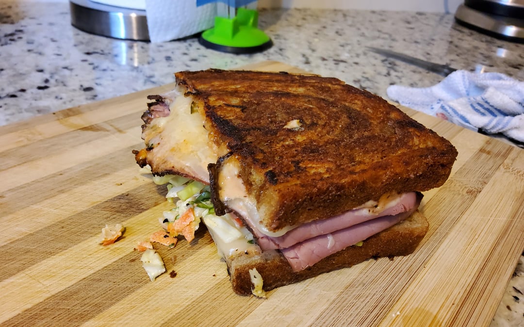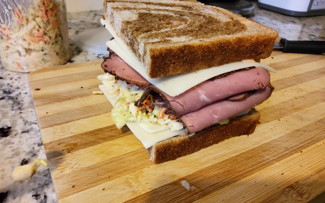 hauntingduck 4 months ago I’d eat the heck out of this but isn’t a Rachel turkey and slaw rather than Pastrami?