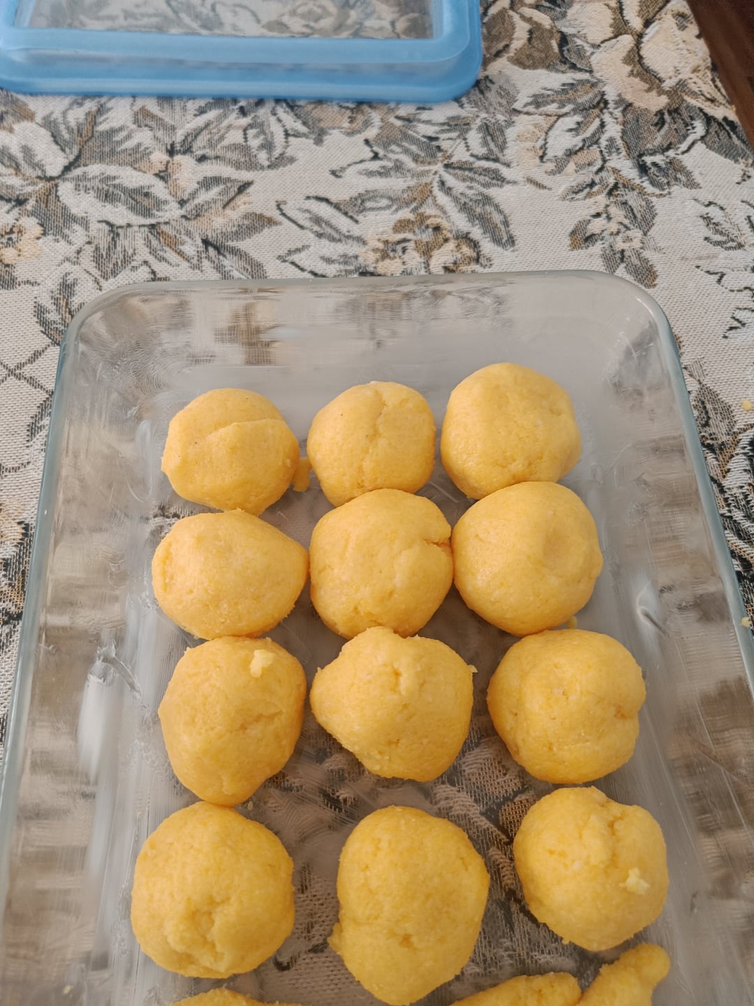– Make little balls of polenta (you should have buttered hands to avoid sticking)
