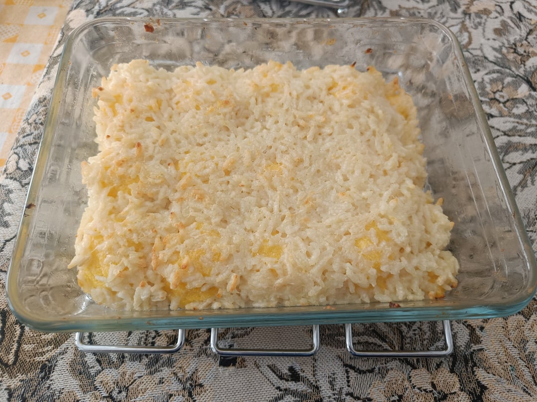– 800g milk + 100g polenta flour + a little bit of salt. You can cook it half of what you usually cook it since it will get 15 minutes more in the oven at the end. The consistency should be soft like a dough, smooth and not crumbly, if it dries out too much and you need to cook it more add more milk or even just water, it should be hot too. Usually polenta takes about 40-50 minutes (if it's good polenta not instant) so about 20-25 minutes should be enough.