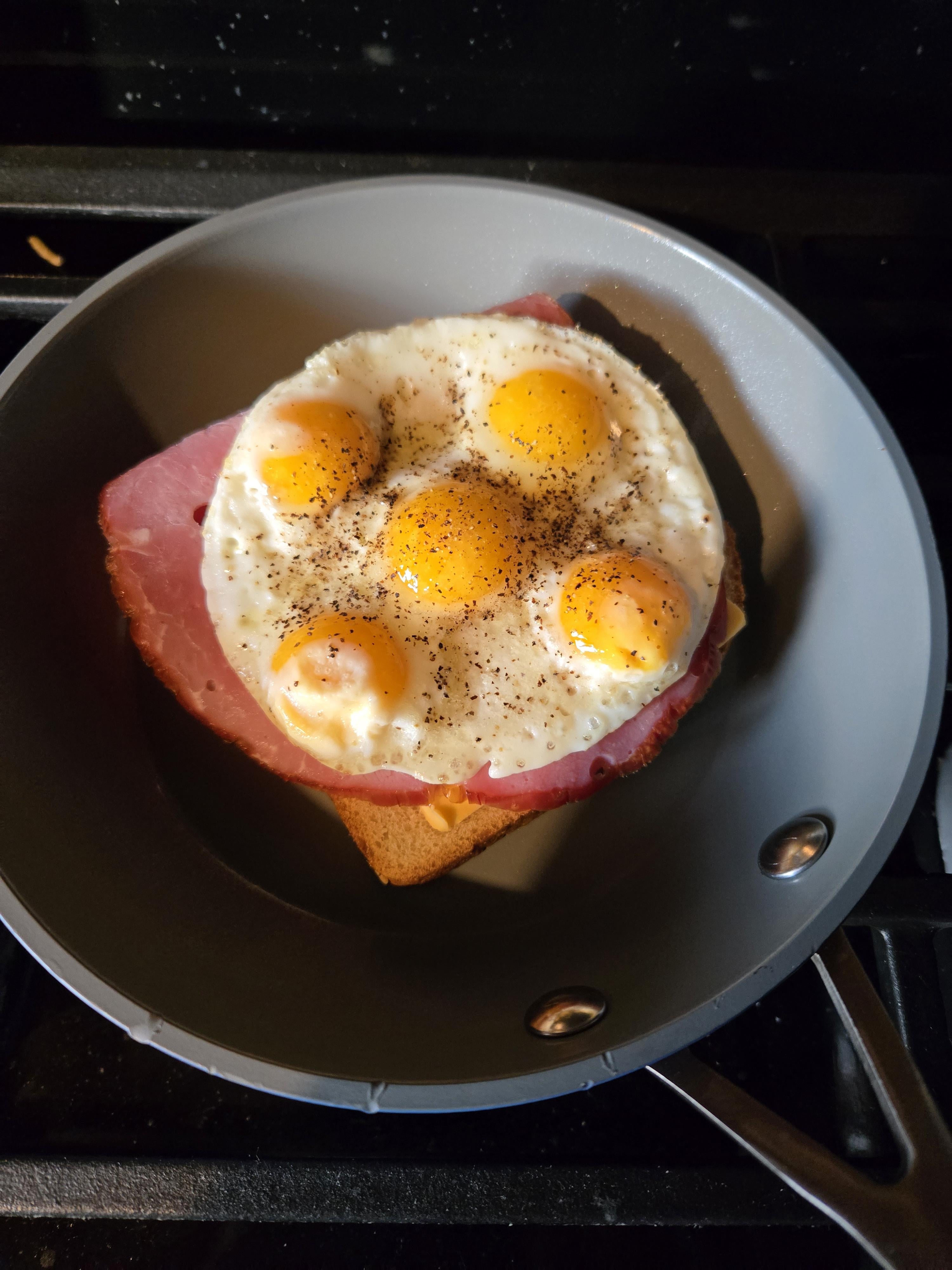 Grilled quail eggs, ham, cheeses on wheat toast.Unfortunately I can only post one picture. You'll have to look at my other posts for the finished product. by Sure-Entrepeneur219 Dining and Cooking