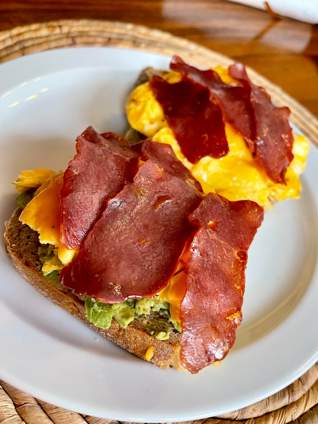 Whole wheat sourdough toast spread with smashed avocado (seasoned with tiny bit of lime juice, salt, and dried basil flakes), topped with a tornado-style cooked egg, and finished with separately cooked Turkish pastırma (pastrami). by erbckr 2 Comments Either-Ad6540 9 hours ago Yum 😋 Fuzzy_Welcome8348 8 hours ago Looks good